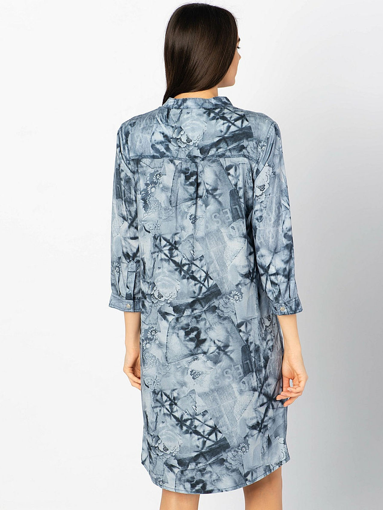 Платье из тенсела. Длина миди. V-образный вырез горловины, рукава 3/4, накладные карманы. Принт с изображением цветов и легким эффектом батика. Длина изделия по спинке: 70 см.