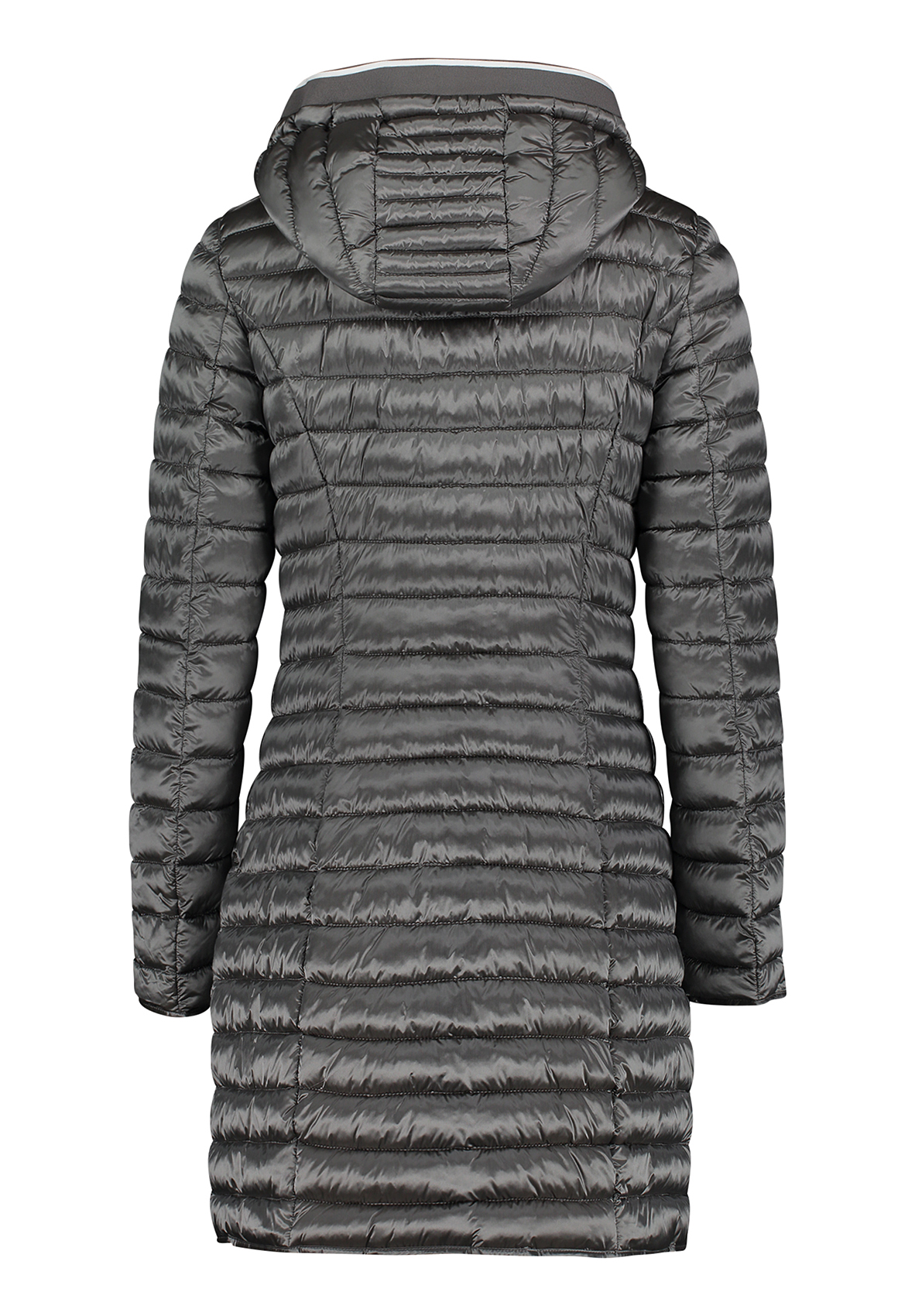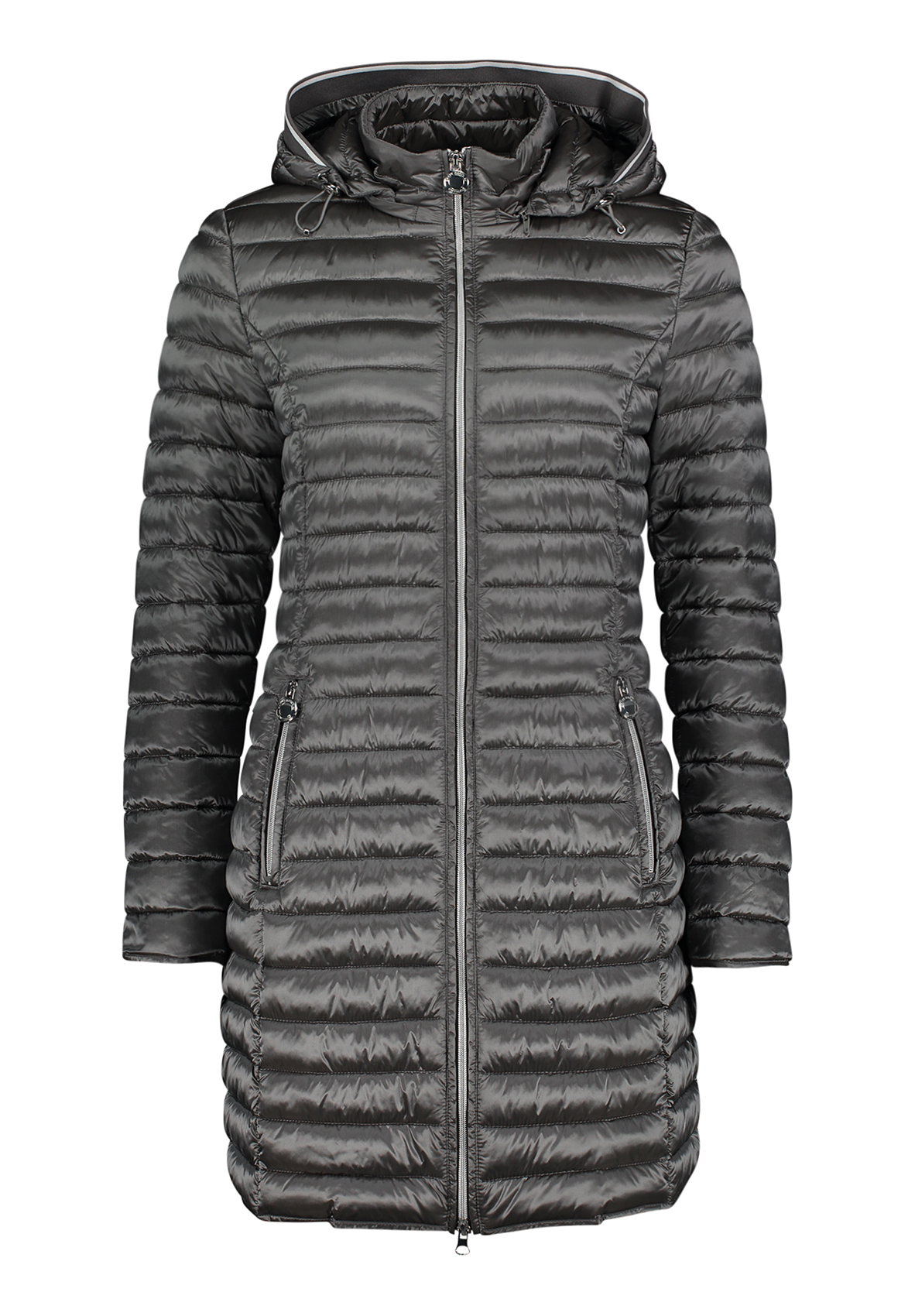 Пальто на облегченном синтепоне. Слегка приталенный силуэт, удобная длина до середины бедра, практичный воротник-стойка, капюшон на кулиске, двойная застежка-молния, карманы на молниях. Материал верха отлично защищает от ветра и влаги.