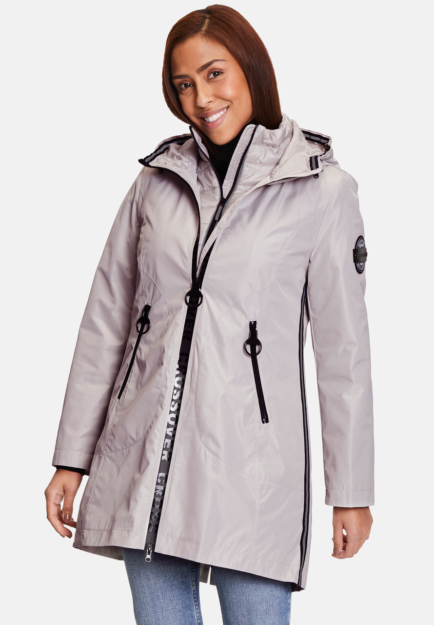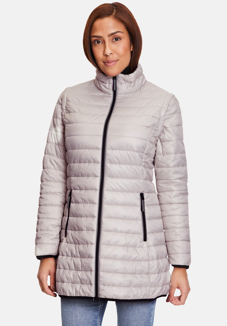 Куртка состоит из внешней куртки из водонепроницаемой ткани и слегка стеганой внутренней куртки. Обемодели можно носить как вместе, так и по отдельности. Вы также получаете жилет, потому что рукава на внутренней куртке съемные.