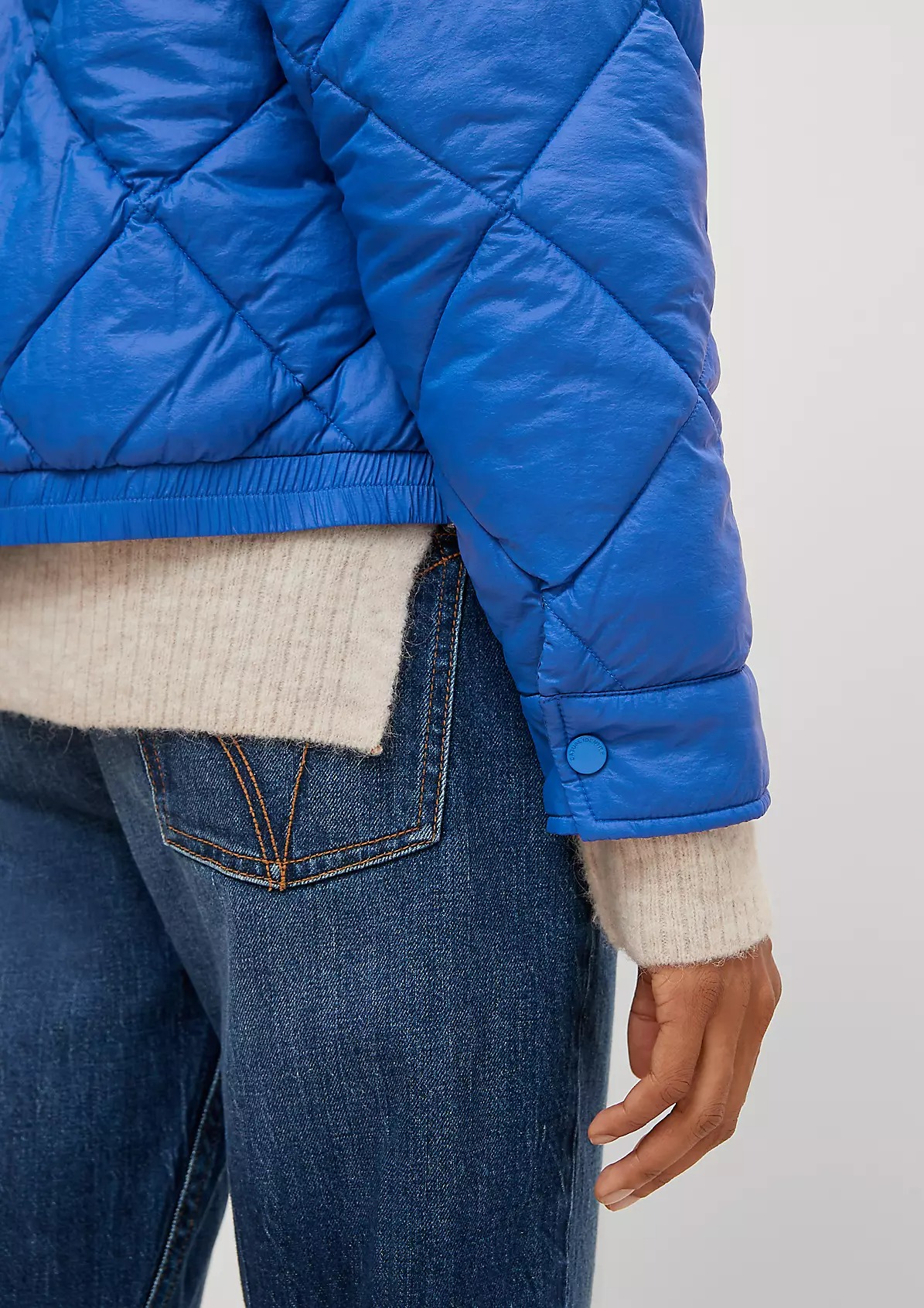 На сайте указаны российские размеры. Утепленная стеганая куртка с потайной молнией. Воротник-стойка. Рукава «летучая мышь», длинные рукава, манжеты. Накладной карман. Длина спины: 57 см в размере 42.