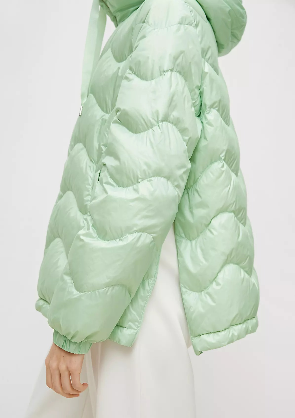 На сайте указаны российские размеры. Короткая куртка с капюшоном и стеганой отделкой. Подкладка: подкладка из тафты. Наполнитель: пух и перья. Длинные рукава, эластичные манжеты. Длина спины: 64 см в размере 42 Рост модели: 178 см