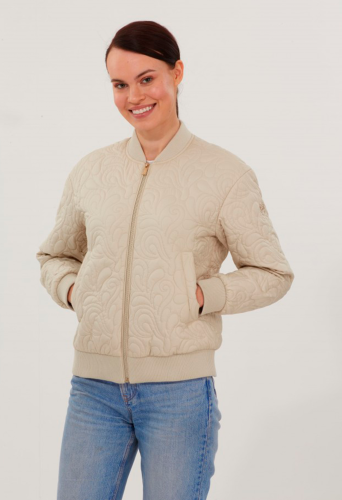 Куртка женская укороченная прямого силуэта на утеплителе. Выполнена из стеганной водоотталкивающей ткани микрофибра. Застежка по борту на молнии, карман листочка. Пояс, воротник и манжеты выполнены из эластичного трикотажа.
