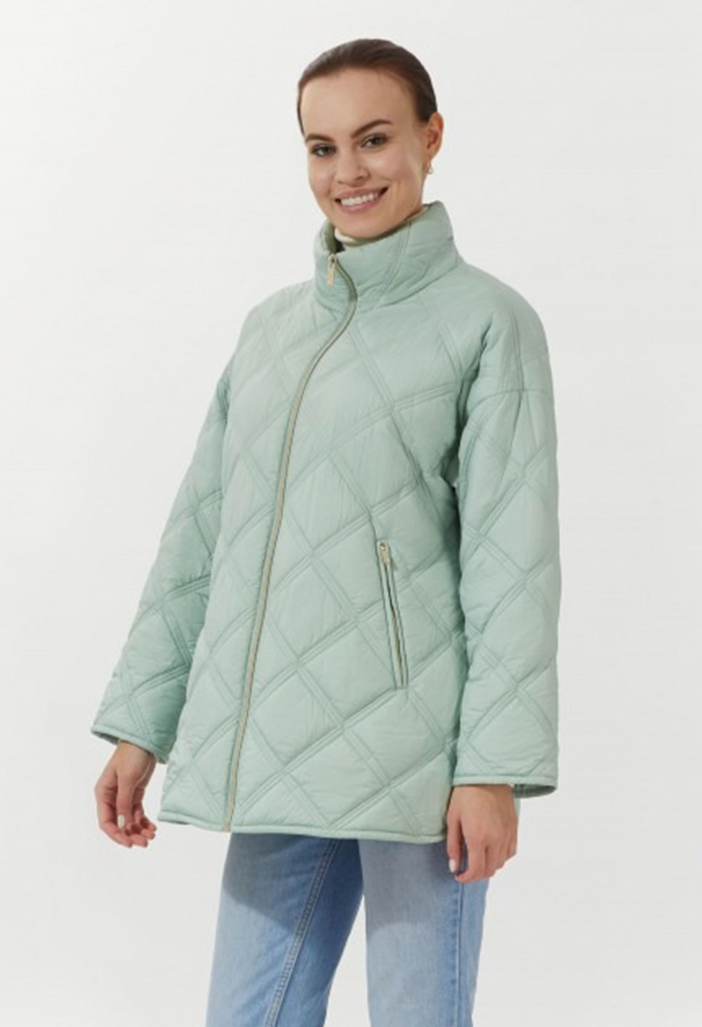 Куртка женская укороченная силуэта трапеция и разрезами по боковым швам. Выполнена из стеганной водоотталкивающей ткани микрофибра. Застежка по борту и карманы на молнии, воротник- стойка.