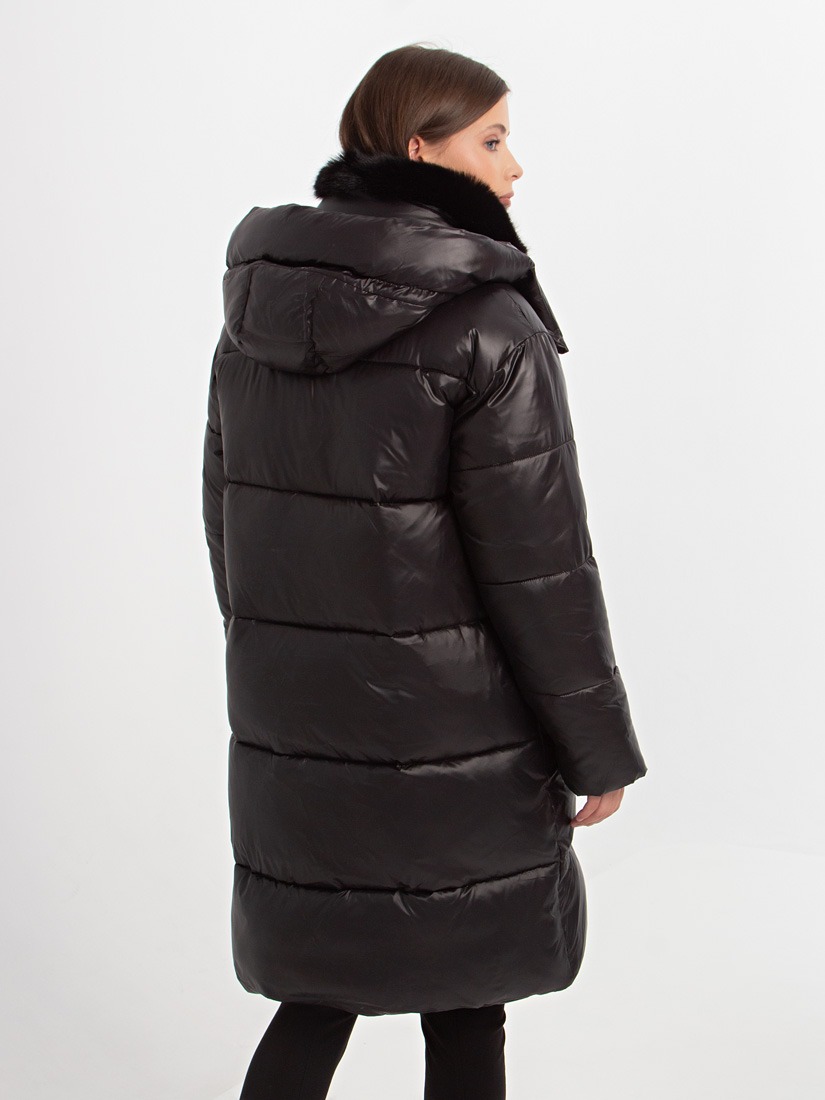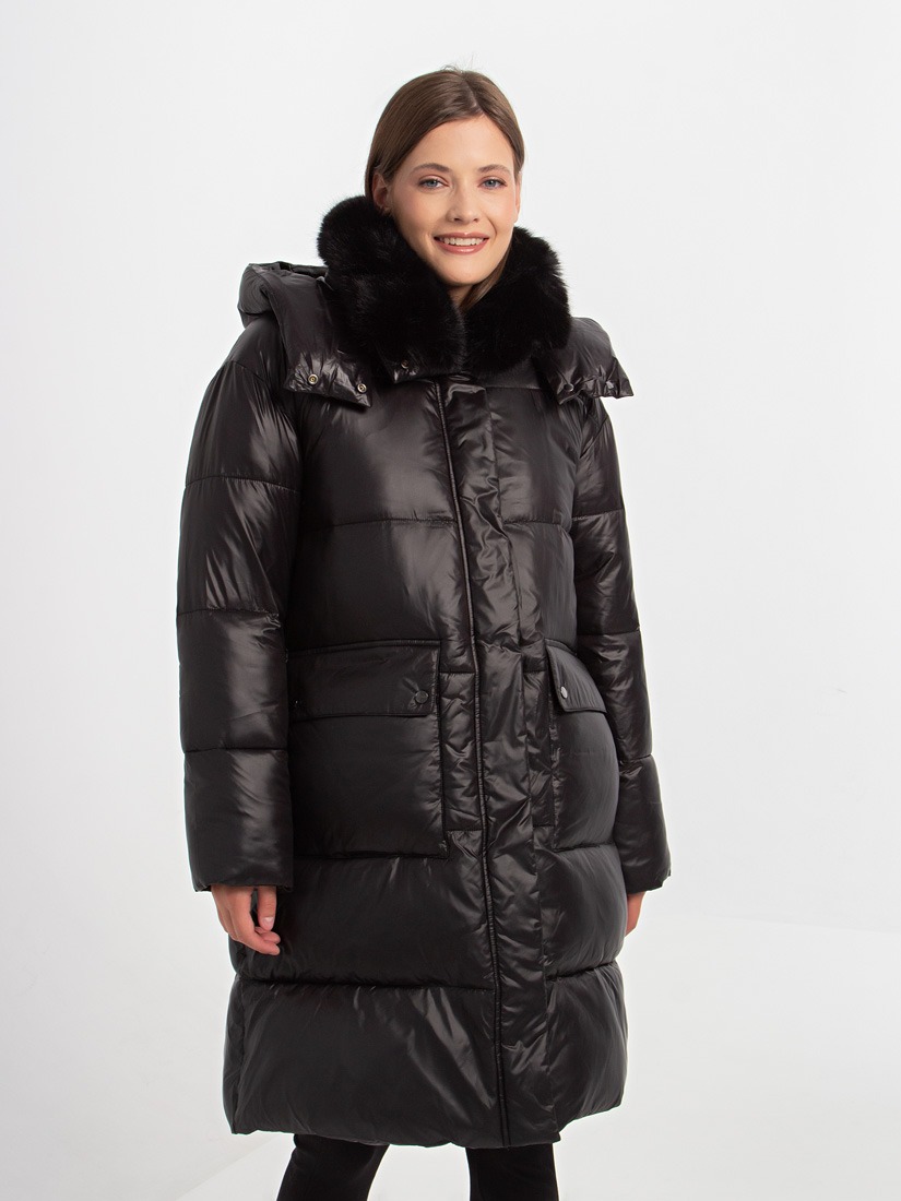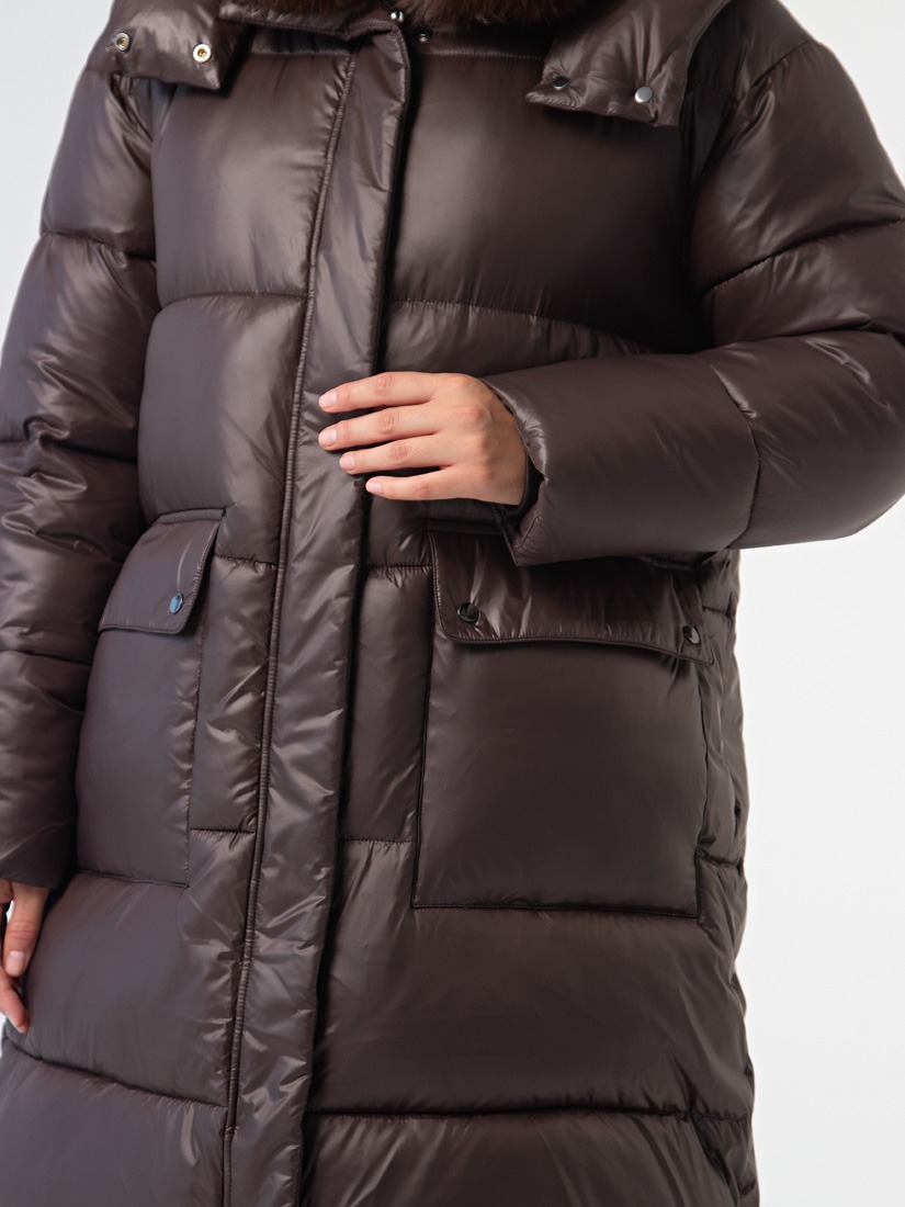 Парка свободного силуэта с накладными карманами из модного нейлона с деликатным блеском. В этой куртке будет комфортно во время прогулки при температуре до -25 градусов. Куртка выполнена по эко технологиям- утеплитель био-пух для этого изделия получили из 15 переработанных пластиковых бутылок, уютный сьемный воротник – экомех, имитирующий песца. Для комфорта сделаны эластичные внутренние манжеты и утепленные двойные карманы, съемный капюшон, противоветровая планка спереди. Модель выполнена в двух расцветках – черный с подкладкой фуксия и кофейный с подкладкой в тон верха. Воротник из экомеха в тон верхней ткани. Длина: 98 см. Утеплитель: 290 грамм/м2