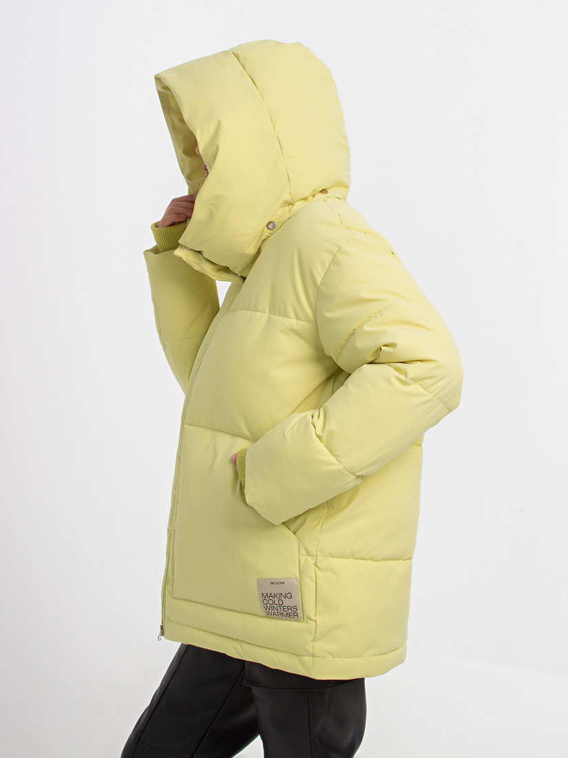 Для пошива яркого стеганого пуховика использовали плотную матовую ткань с внутренней пропиткой, которая не промокает и не продувается ветром. Дополнительную защиту от ветра обеспечивают глубокий съемный капюшон и регулируемая эластичная кулиска понизу, вязаные манжеты. Большие накладные карманы – тренд сезона, на левом кармане тканная эмблема с логотипом. Куртка силуэта оверсайз,для тех кто любит свободу движений. Длина: 73 см. Утеплитель: 280 грамм/м2