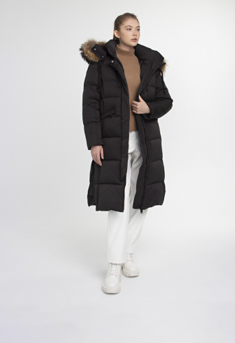Парка средней длины изготовлена из плотного матового не продуваемого полиэстера. Изделие утеплили легким био-пухом. Глубокий отстегивающийся капюшон со съемной отделкой из меха енота не оставит шансов ветру. За дополнительный комфорт отвечают широкая планка, теплые карманы и внутренние трикотажные ветрозащитные манжеты. Пуховик декорирован фактурными лентами черного цвета, которые дополнительно усиливают кнопки. Длина: 106 см. Утеплитель: 290 грамм/м2