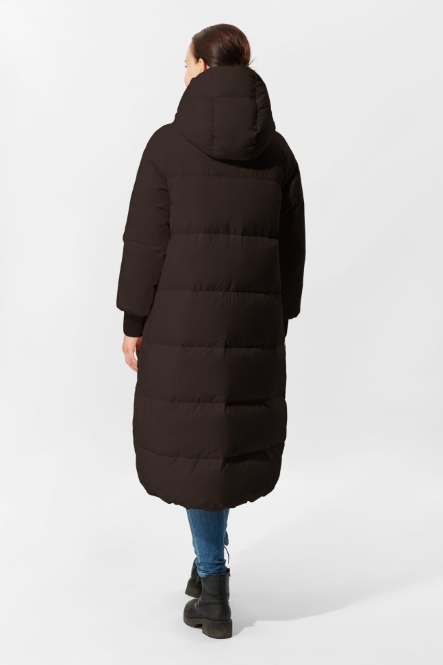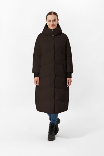 Пальто женское прямого силуэта. Выполнено из ткани микрофибра Застежка борта на молнии и потайные кнопки. Карманы листочки, втачной капюшон, по низу рукава резинка.
