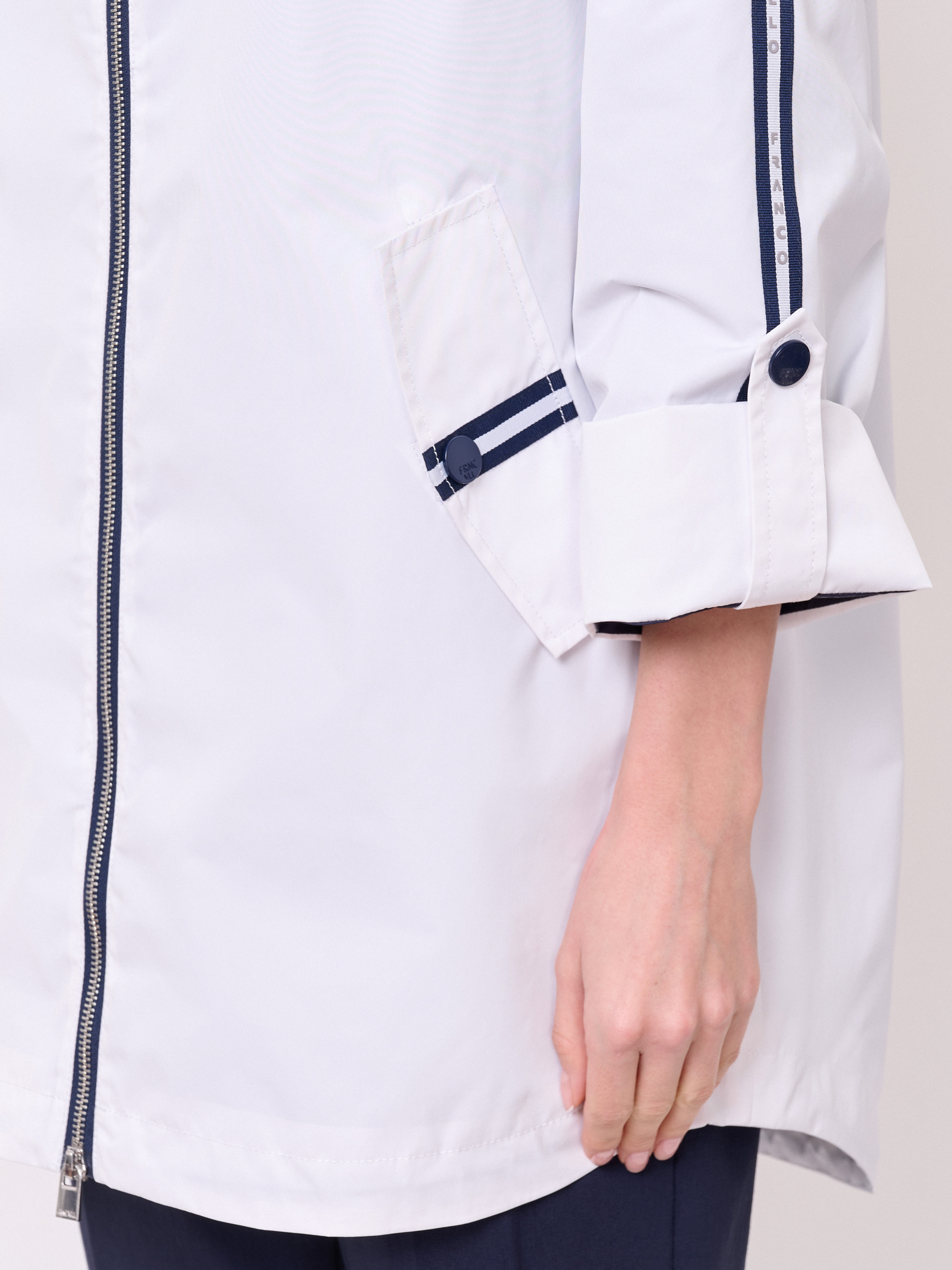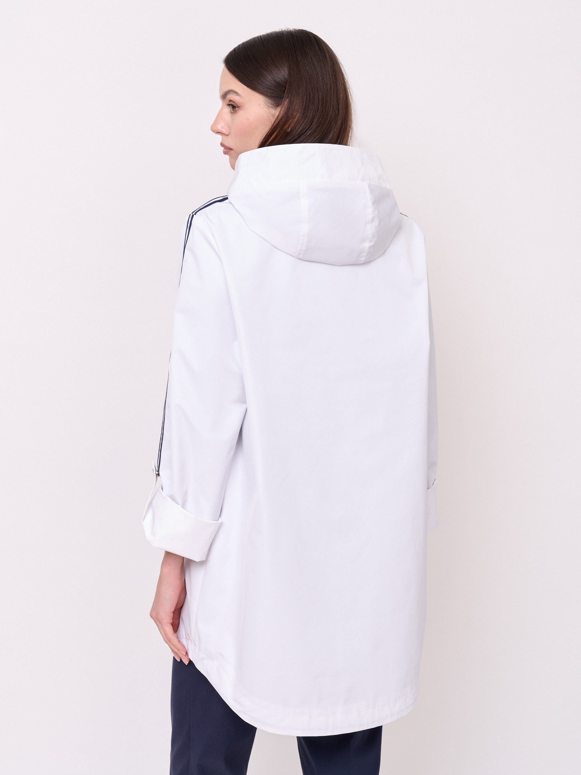 Застежка молния, несъемный капюшон, рукава длинные с хлястиками на кнопках, покрой прямой, без рисунка, без утепления, карманы прорезные с клапанами на кнопке, борты однобортное. Длина по спинке: 84 см.