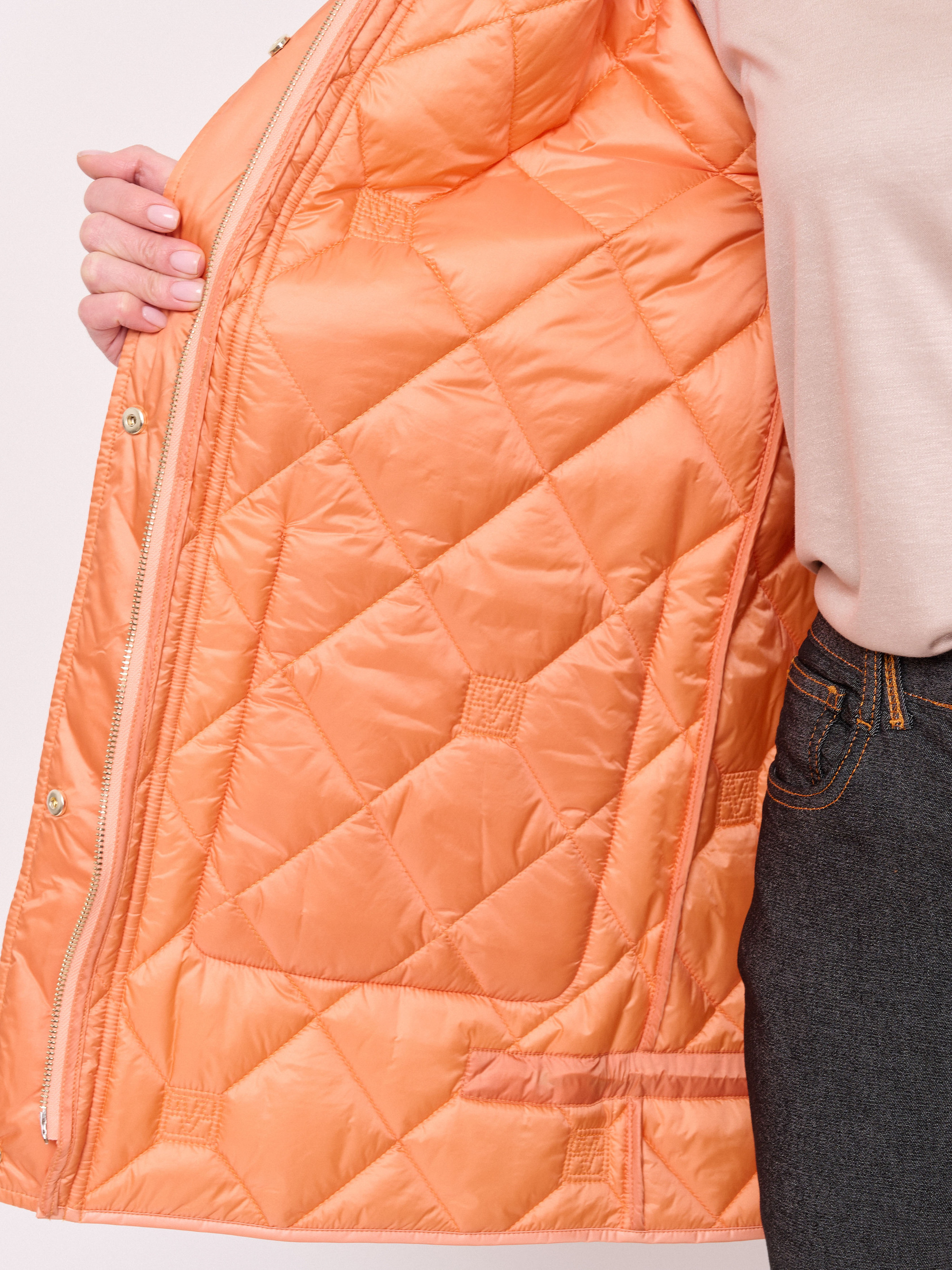 Детали: застежка молния и кнопки, без капюшона, рукава длинные, покрой прямой, без рисунка, утеплитель полиэстер, карманы накладные,без опушки, кулиска по низу. золотистая фурнитура. Длина по спинке: 76 см. Плотность утеплителя: 80 см.