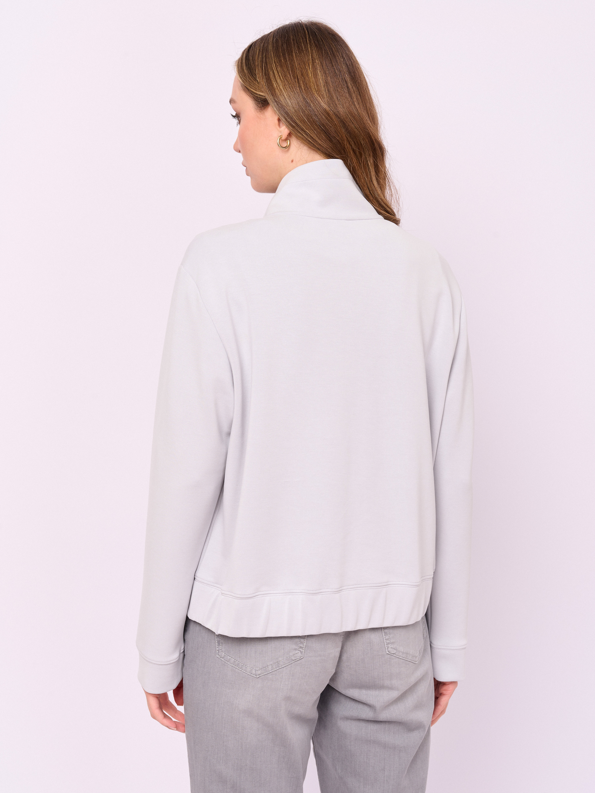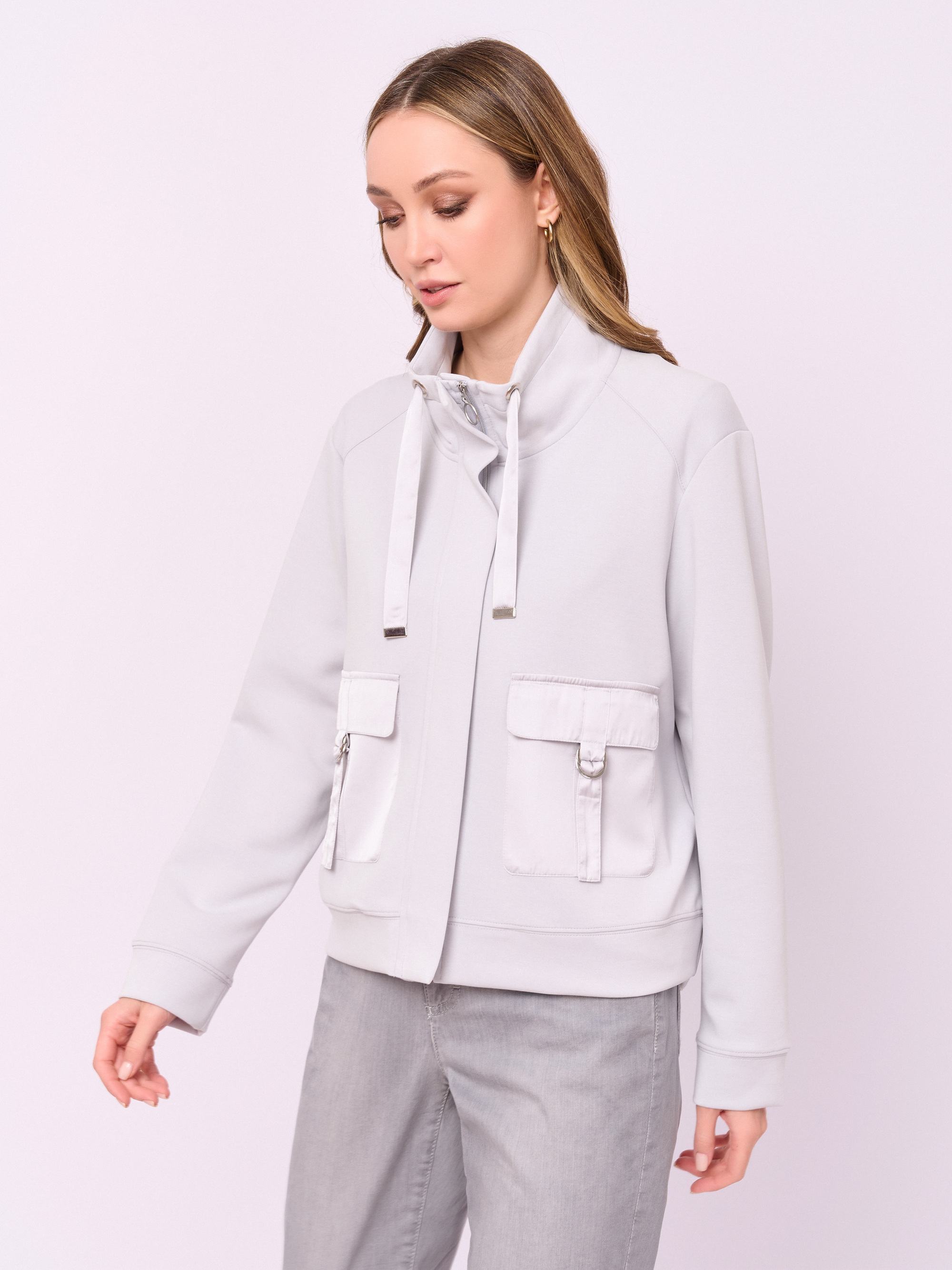 Детали: застежка молния, без капюшона, рукава длинные, покрой прямой, без рисунка, без утепления, карманы накладные. Длина по спинке: 57 см.