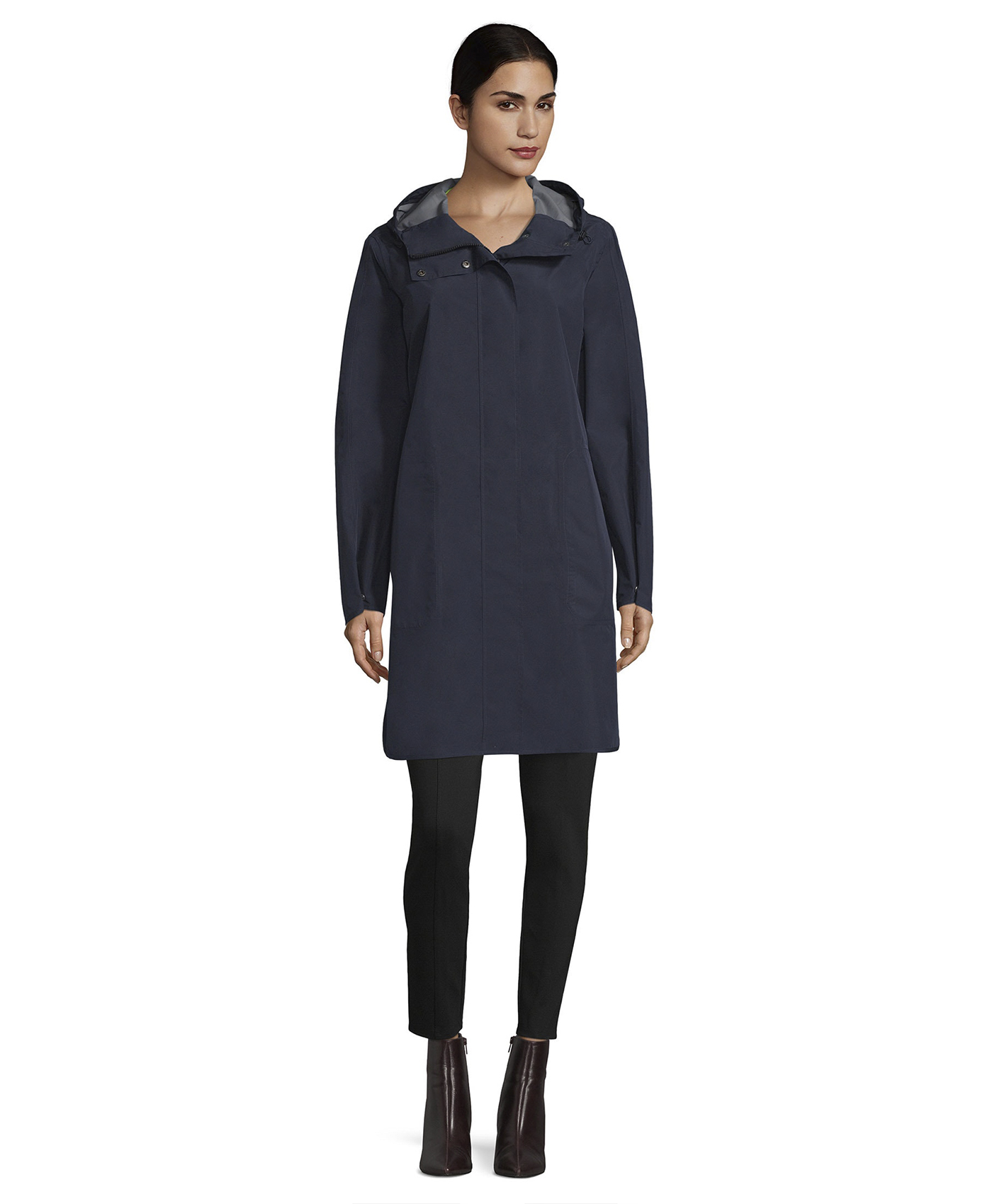 Стильный плащ отлично защитит в непогоду. Трендовый прямой крой. Капюшон на кулиске переходит в воротник-стойку. Застежка-молния закрыта ветрозащитной планкой. Кнопки на рукавах позволяют регулировать их прилегание и создавать защипы. С этим лаконичным плащом можно создать множество модных образов!