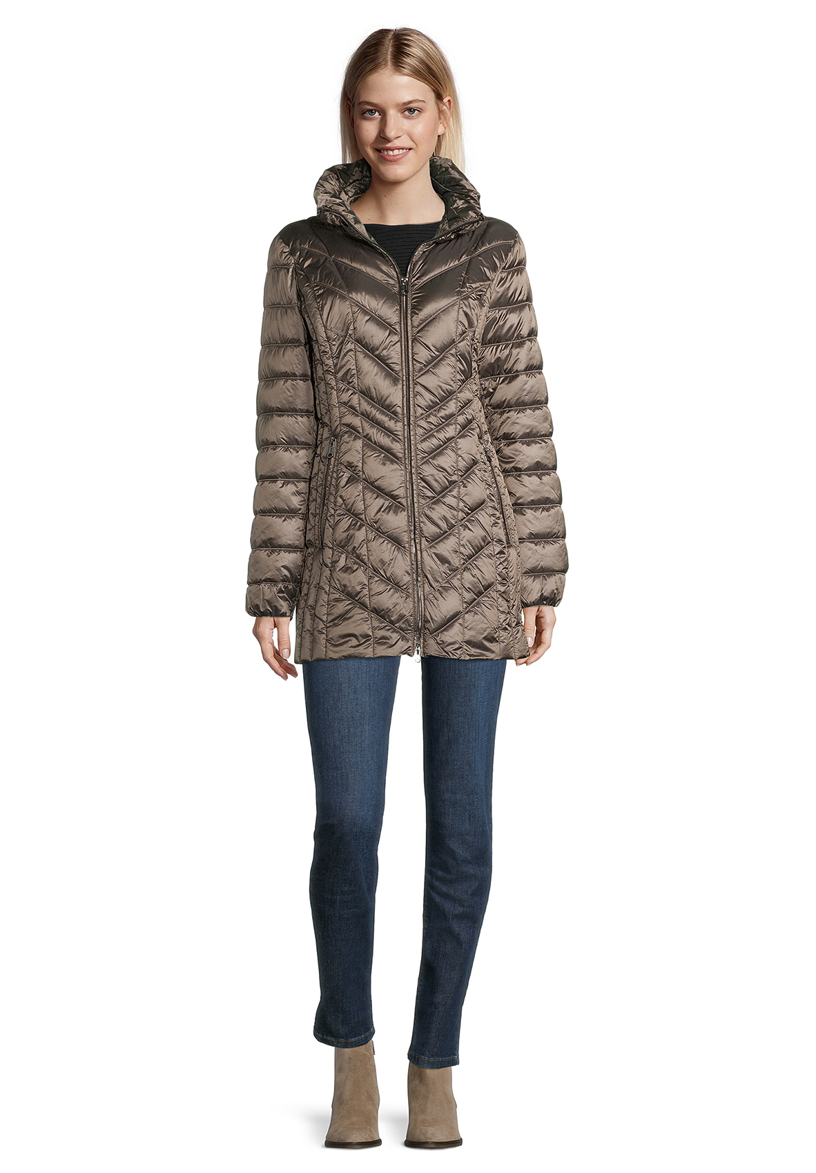 Куртка слегка приталенного силуэта. Удобная длина, практичный воротник-стойка, двойная застежка-молния, карманы на молниях. Ткань верха отлично защищает от влаги и ветра.