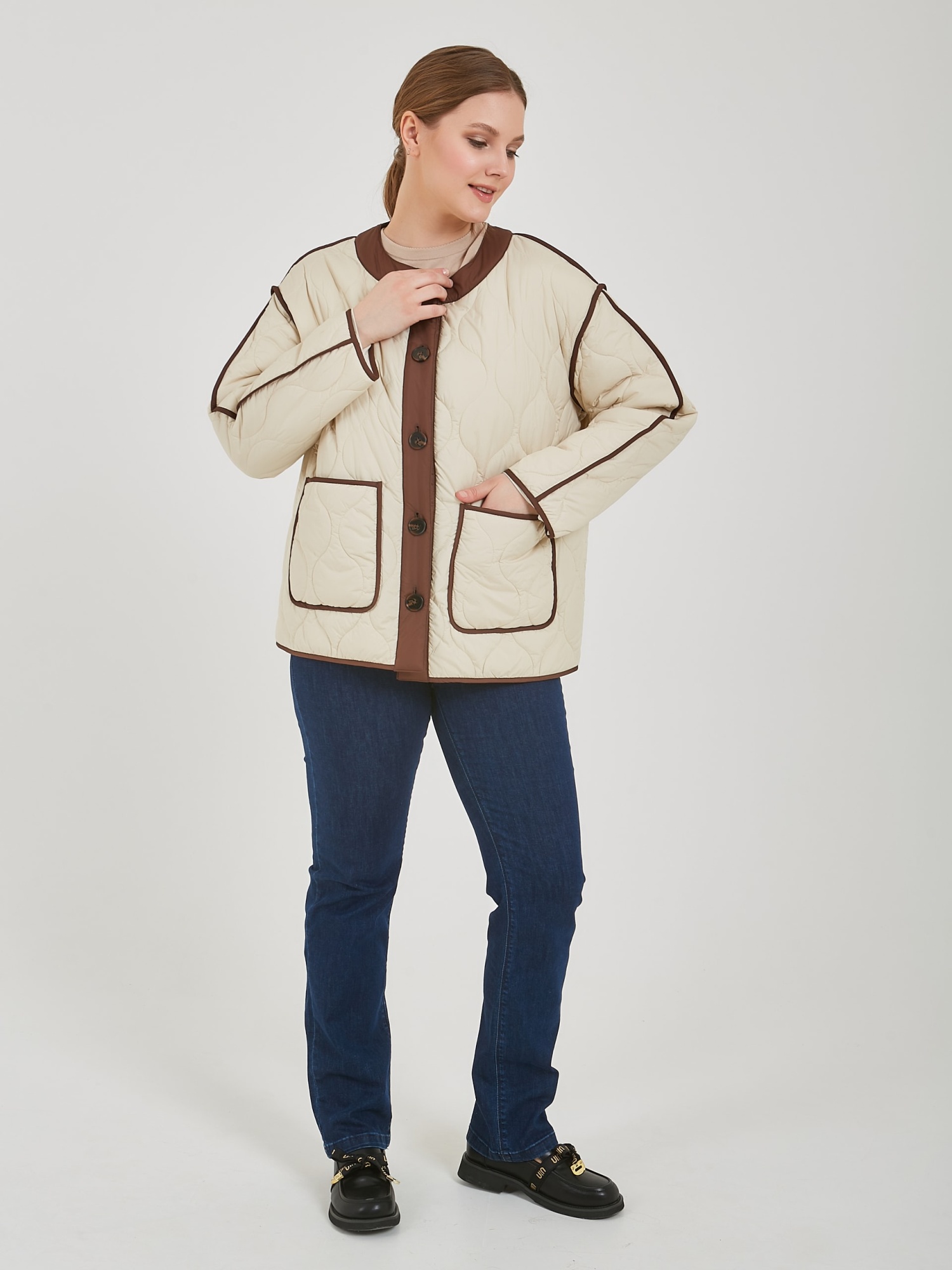 Женская утепленная куртка подарит тепло в прохладные дни. Женская куртка на пуговицах имеет удобный крой, стильный дизайн и практичность, который подходит для создания повседневных образов. Коллекция Весна-Лето 2025. Капсула "Рио де Жанейро". Параметры модели: 95-64-101, рост 175, размер 44-46