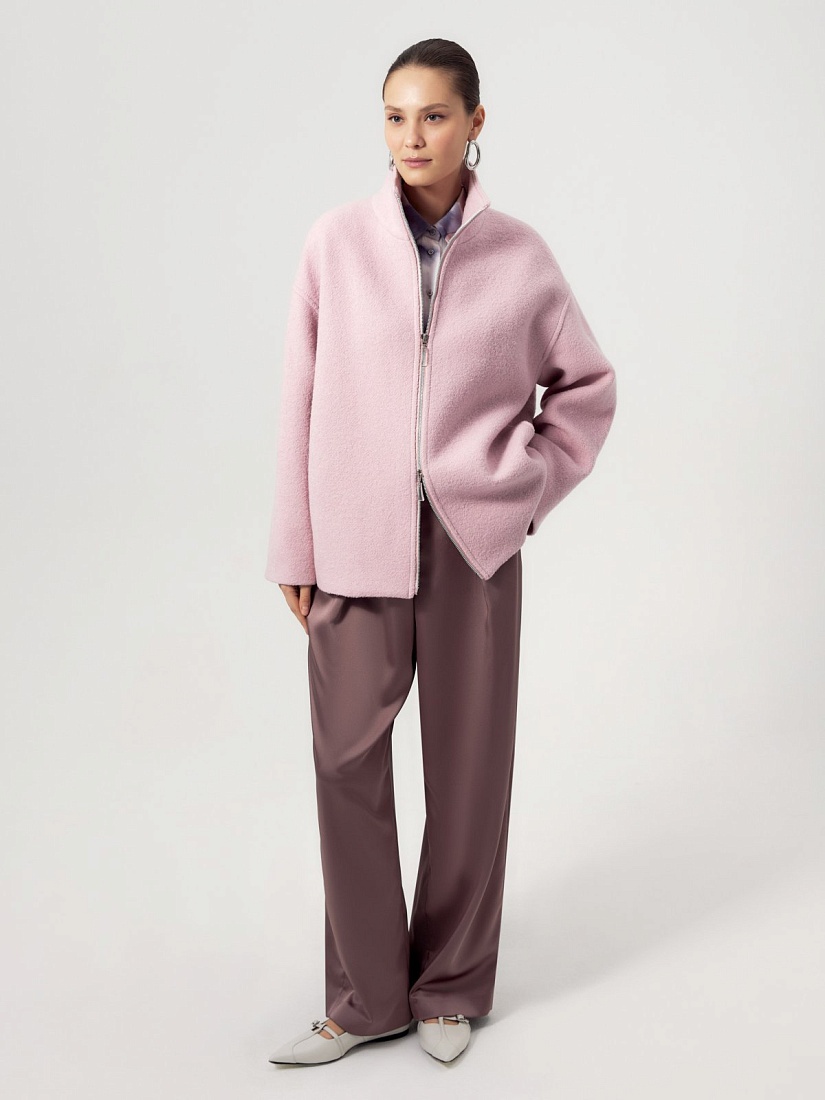 Укороченная компактная куртка из фактурной шерстяной ткани модного ягодного цвета. Широкие рукава, спущенное плечо, застежка на молнию и воротник стойка — такая куртка незаменима в прохладные дни начала весны. Куртка изготовлена с использованием запатентованных технологий: высокотехнологичная мембрана RaftPro надежно защищает от ветра, холода и перепада температур. Произведено в Санкт-Петербурге.