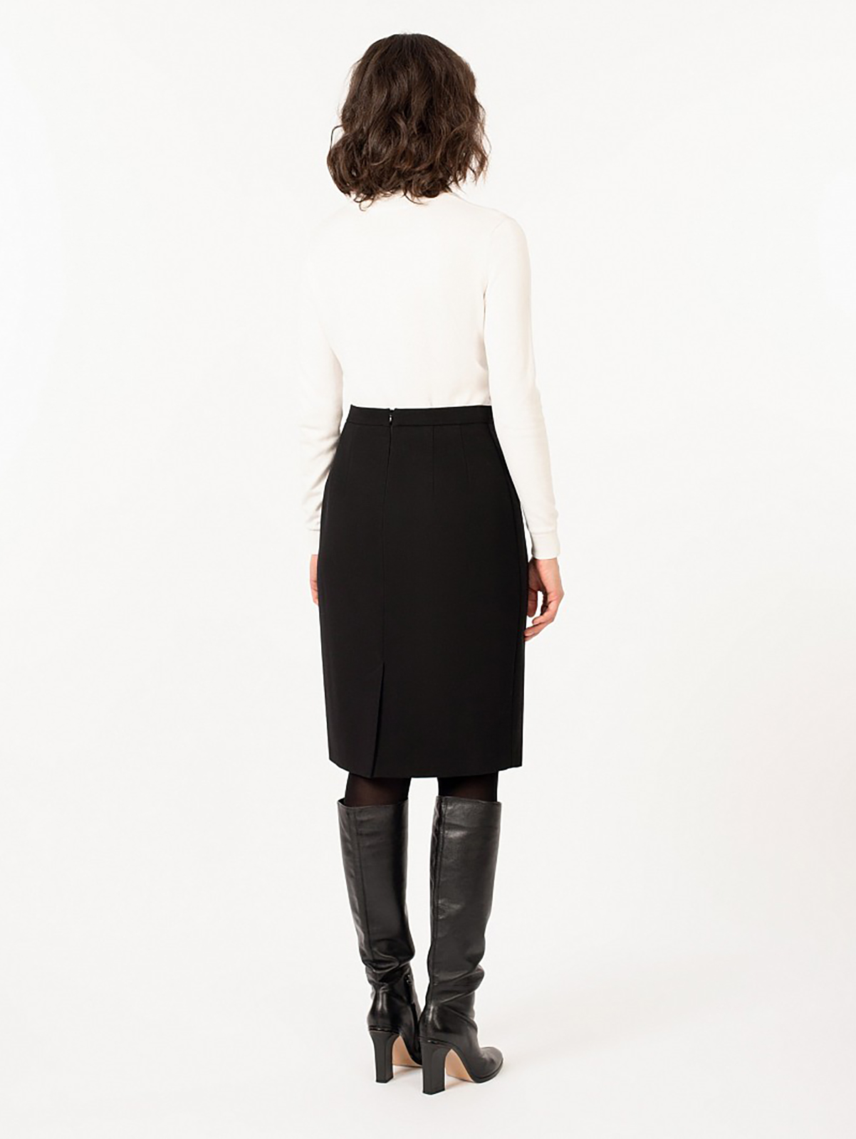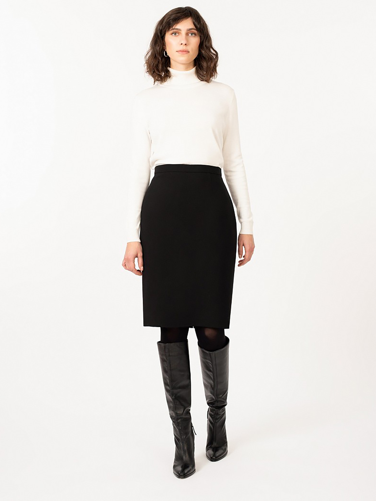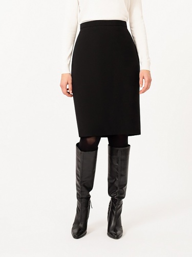 Черная юбка-карандаш – бессменная классика делового стиля. Длина до колена, комфортная посадка по естественной линии талии. Застежка на молнию сзади.
