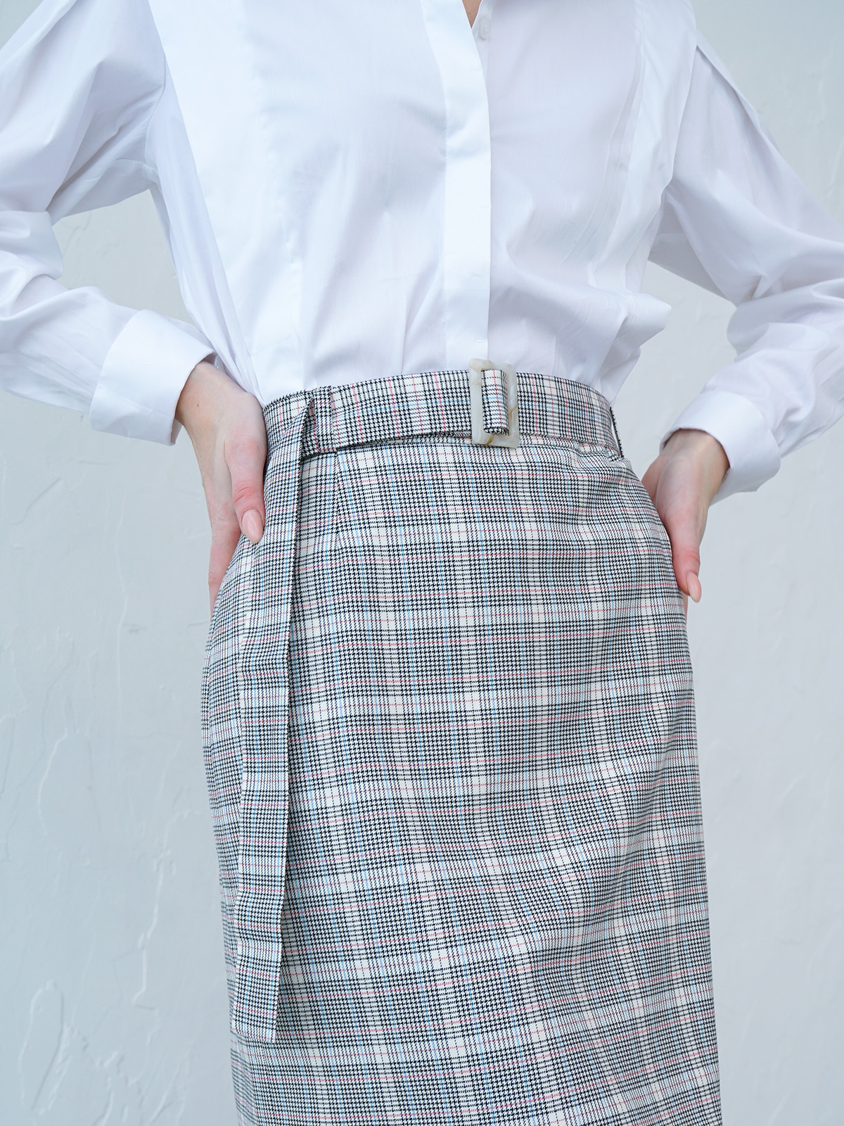 Юбка-карандаш в клетку. Застежка на молнию. В комплекте идет тканевый пояс.