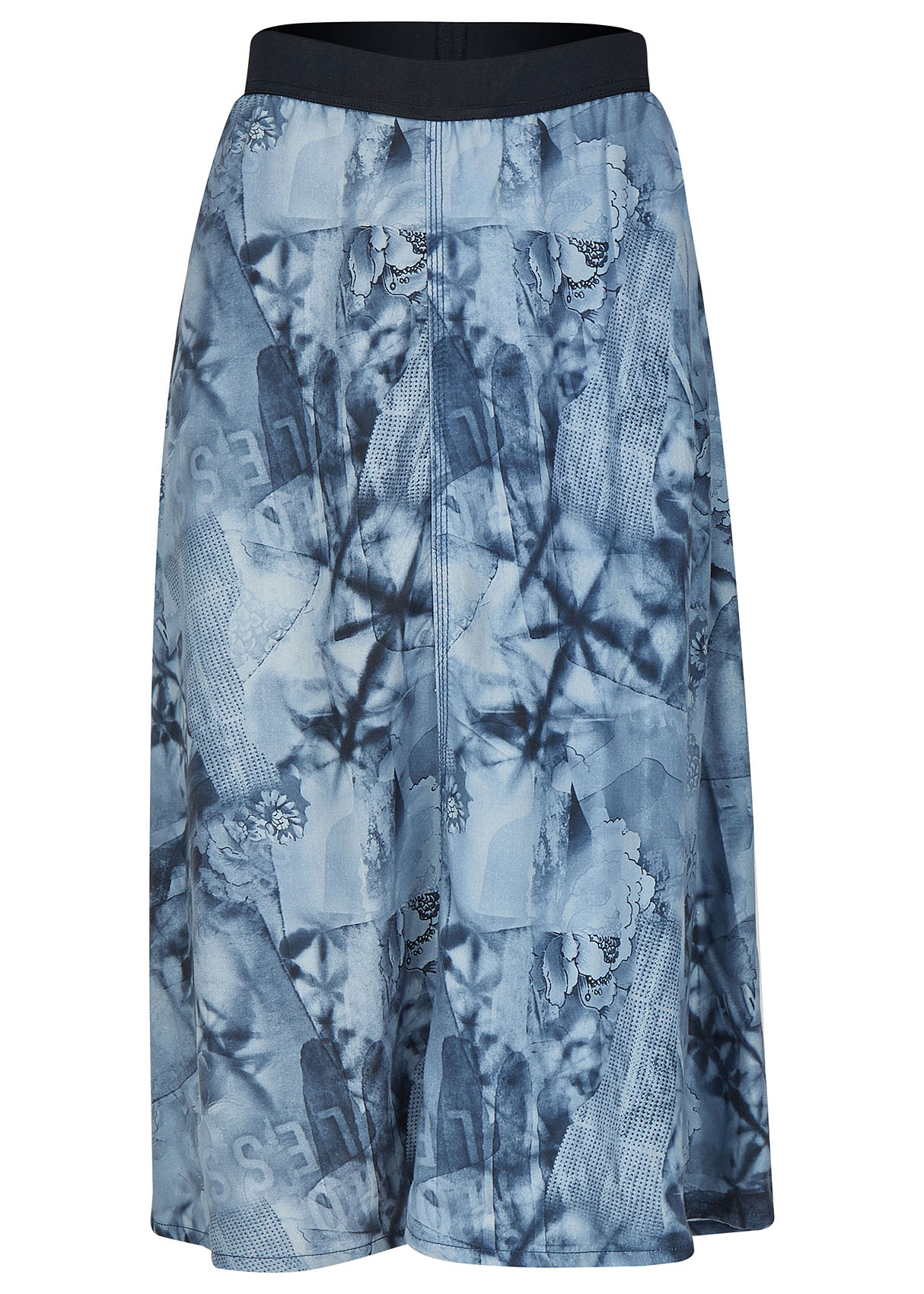 Юбка миди из тенсела. Принт с изображением цветов и легким эффектом батика. Эластичная лента на поясе.