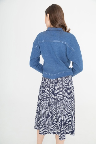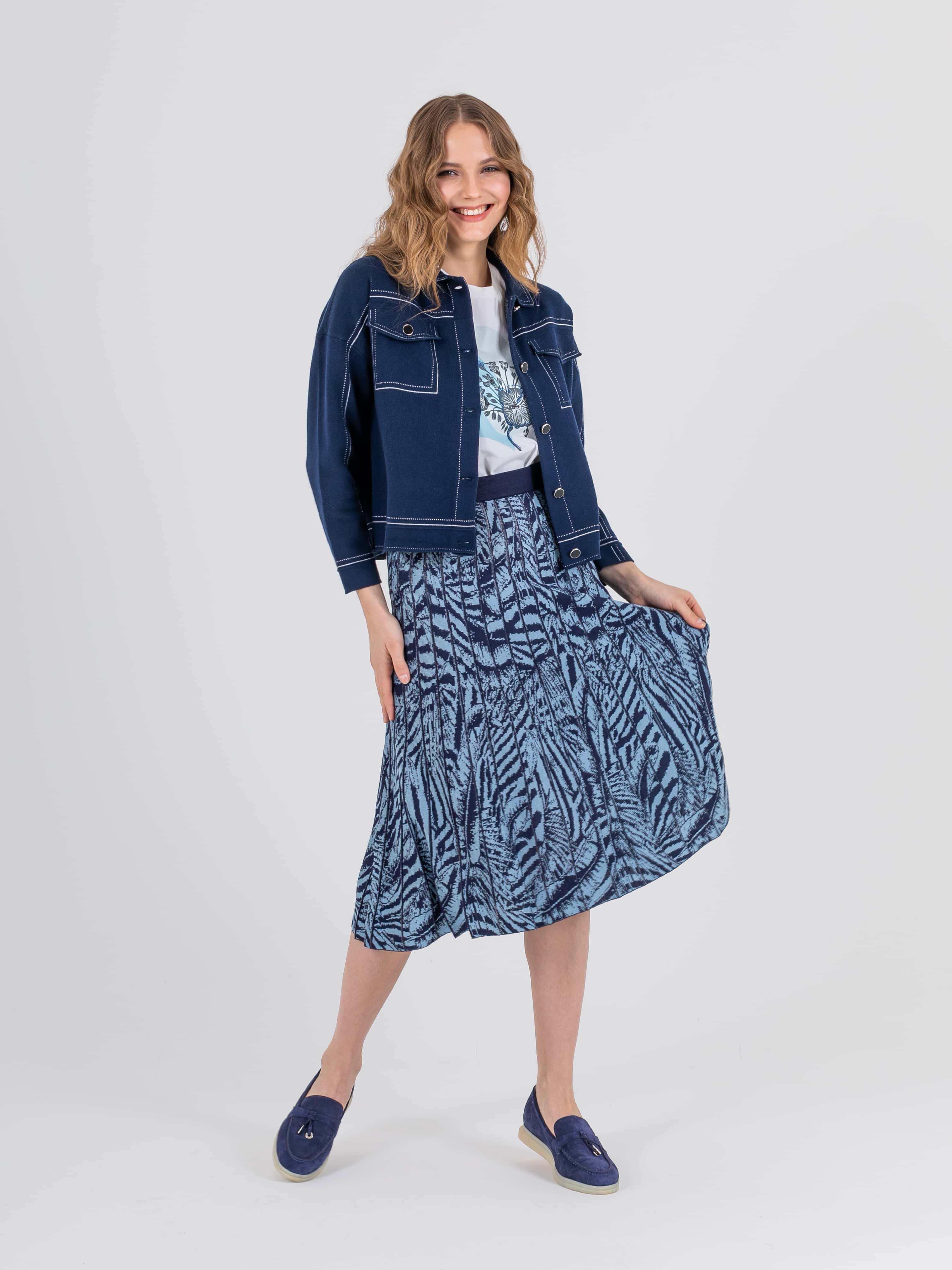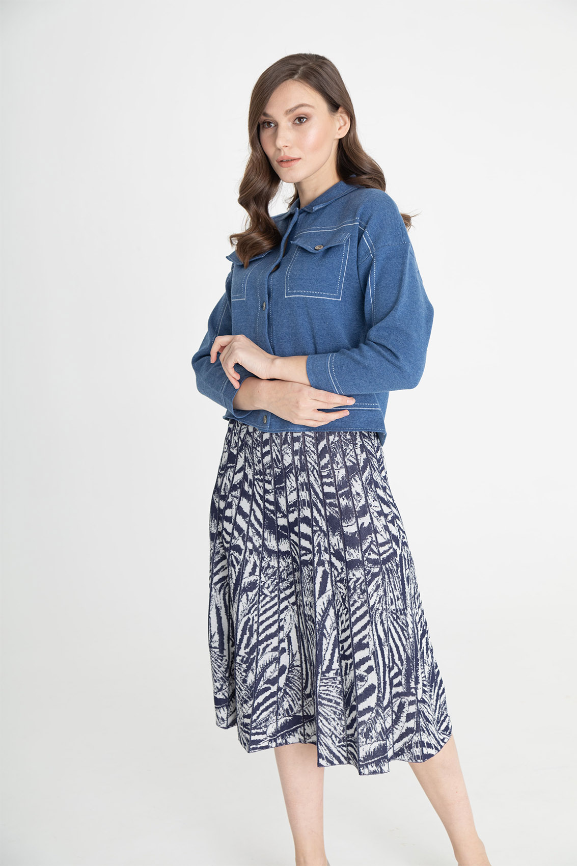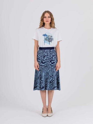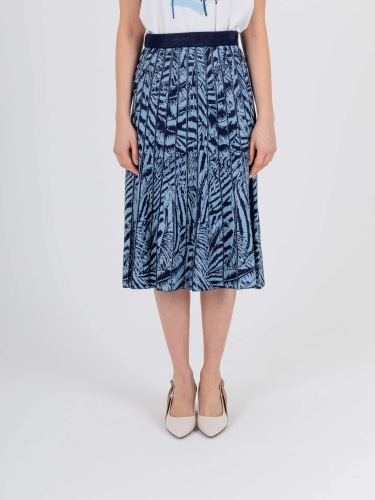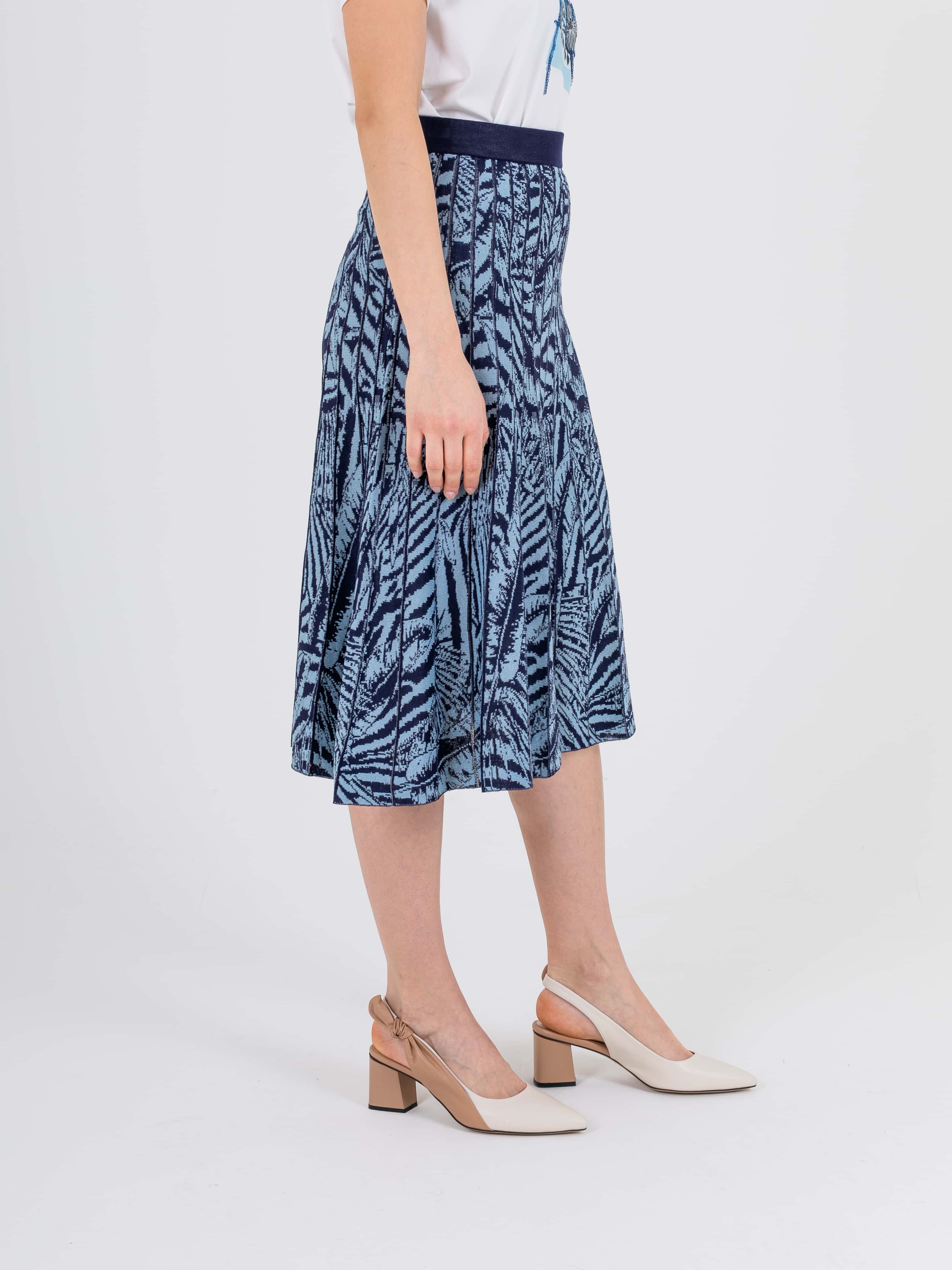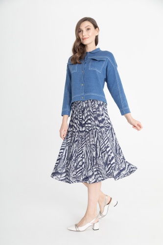 На сайте указаны российские размеры. Ткань: вязаная юбка выполнена из вискозы с добавлением нейлона. Крой: на 100% женственная, вязаная фактурная юбка из вискозы создает настроение праздника даже в будни. А-силуэт, расклешенный книзу, прекрасно уравновешивает фигуру и корректирует особенности, например, широкие бедра. Завышенный пояс-резинка не только подчеркивает стройность талии, но и добавляет демократичности и свободы изделию – юбку легко надевать. Второй элемент одежды можно заправлять внутрь или носить поверх. Отделка: оригинальный принт, имитирующий складку – лучшее украшение юбки, не требующее дополнительных деталей. Вертикальная полоса делает силуэт стройным и подтянутым. Юбка представлена в двух стильных оттенках. К ней можно подобрать аналогичный по цвету и фактуре джемпер, тем самым, получив полноценный костюм. Джемперы находятся в соответствующем разделе на сайте.