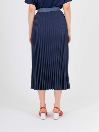 Легкая юбка полусолнце длиной до щиколоток, дизайнерская особенность модели – плиссировка. Верх юбки обработан резинкой.