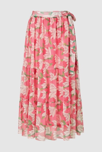 Эта юбка с воланами А-силуэта невероятно игрива. Она также привлекает цветочным принтом по всей поверхности. Романтичный пояс на эластичном поясе — приятная деталь. Длина миди подчеркивает легкость и женственность. Длина в размере 42: 88см