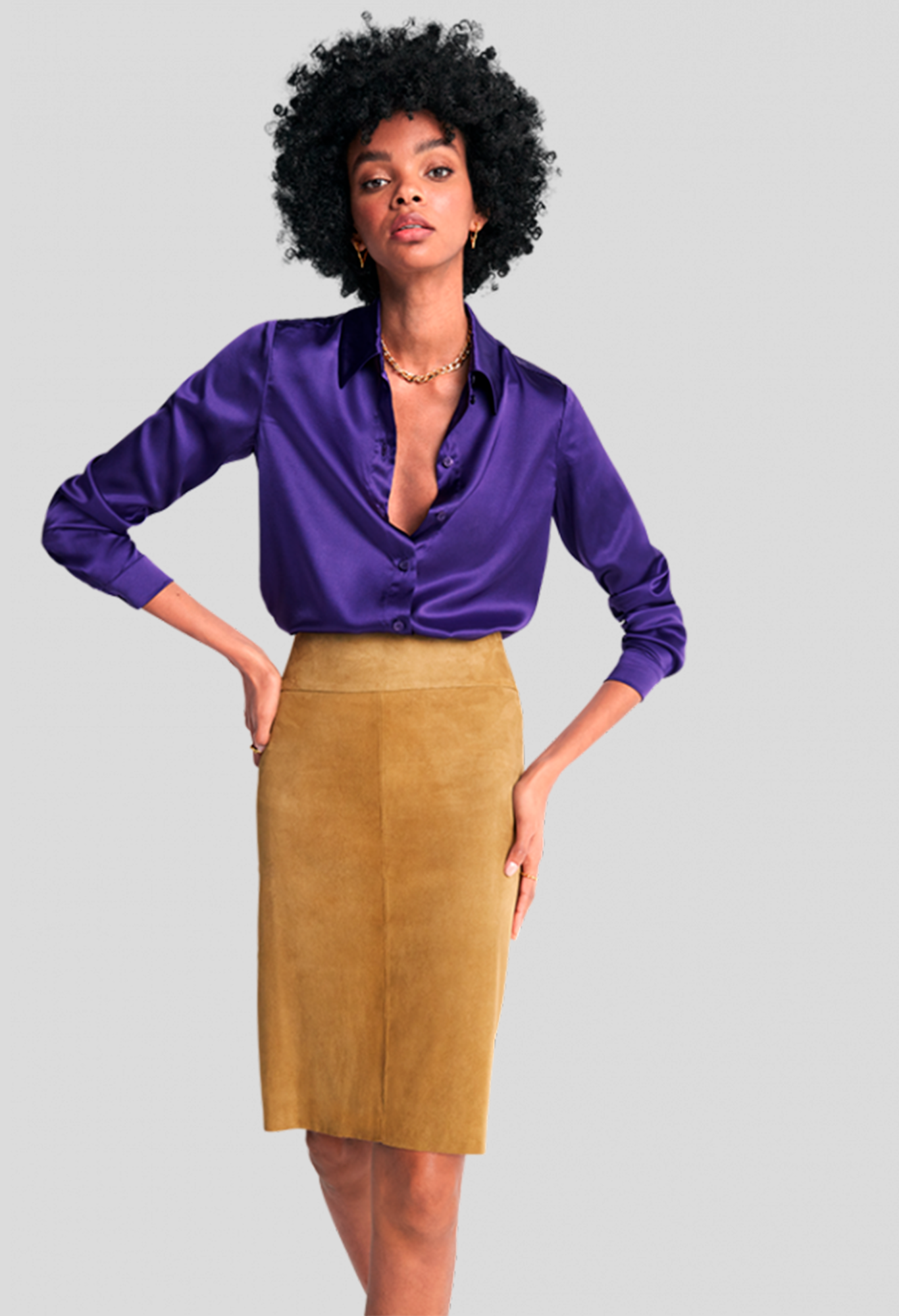 Тонкий силуэт, отличная посадка, стильный вид — эта шикарная юбка из тонкой замши с дерзким разрезом сзади быстро станет вашим партнером по стилю номер 1! Высококачественный материал говорит сам за себя и придает изделию элегантный вид.