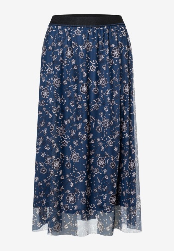 Струящаяся сетчатая юбка с современным цветочным принтом и несложным эластичным поясом. Свободный, струящийся силуэт. Несложная форма без шнуровки с эластичным поясом. Современная длина миди. Длина по размеру 42 - 74 см.