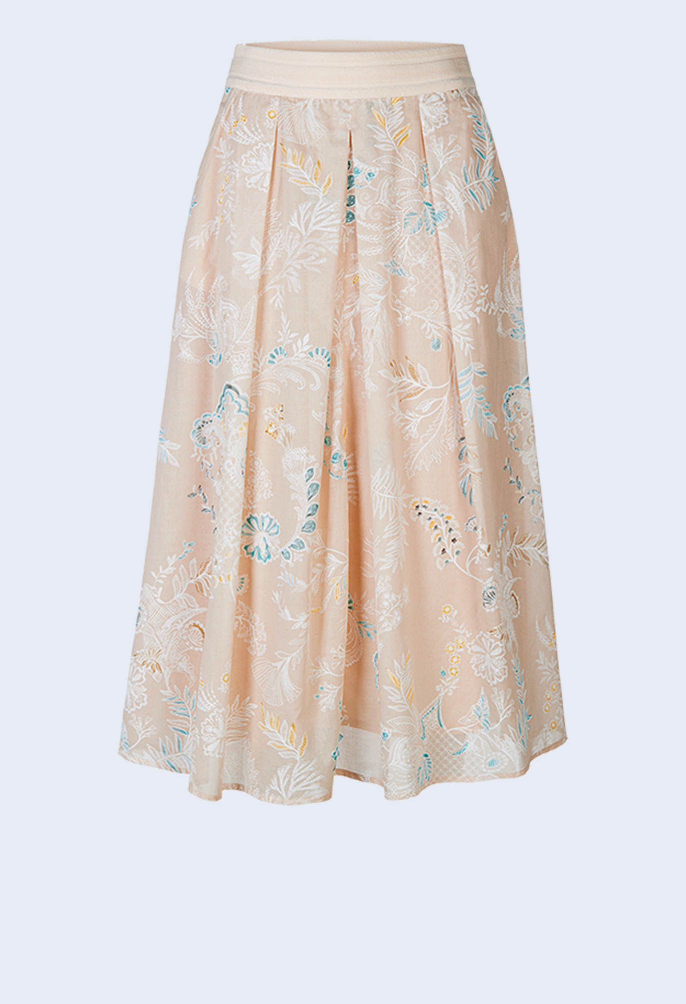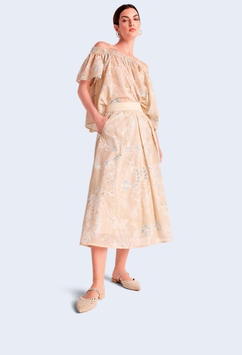 Хлопковая юбка с цветочным мотивом. Особый и сложный процесс печати придает принту особый 3D-эффект. Классический А-силуэт выполнен в виде юбки-комбинации, имеет боковые карманы и модную драпировку.