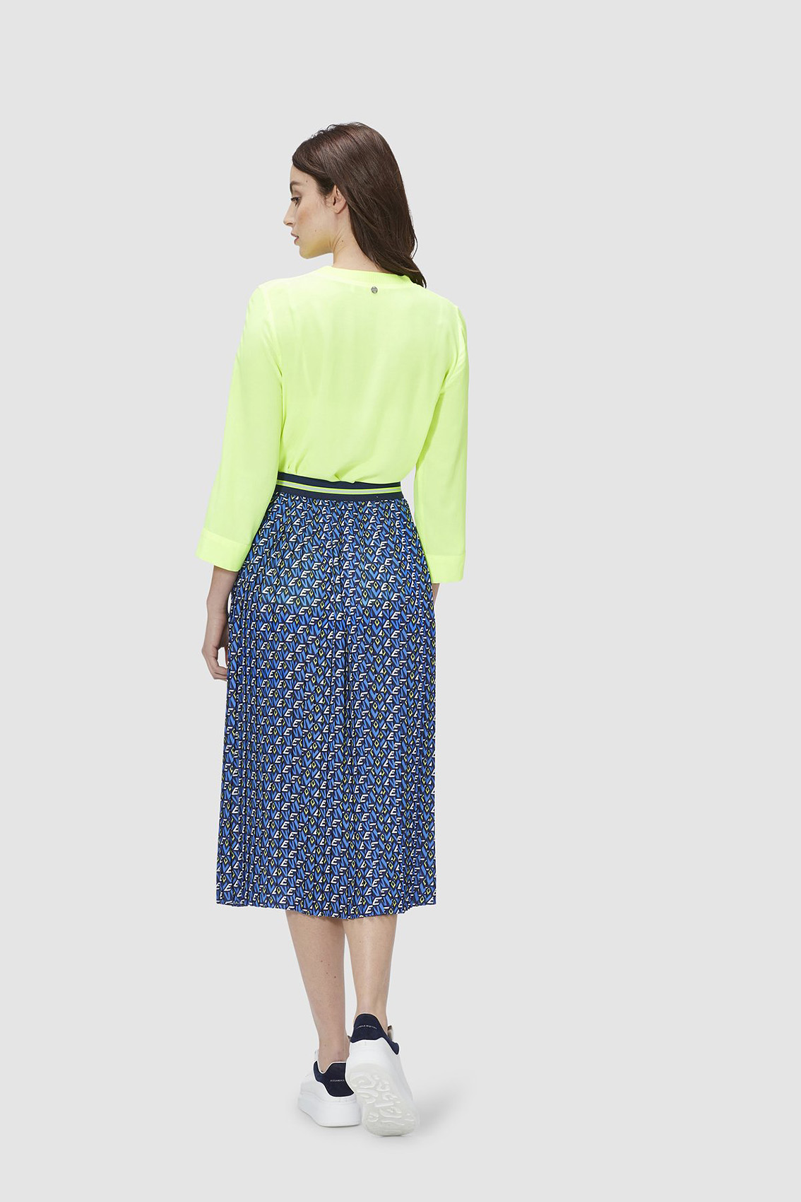 Плиссированная юбка - абсолютный фаворит сезона. Этот вариант впечатляет графическим рисунком с эффектом 3D. Неоновые акценты - еще один тренд современного дизайна. Эта модель - ключевой элемент образа, который идеально выражает индивидуальный стиль.