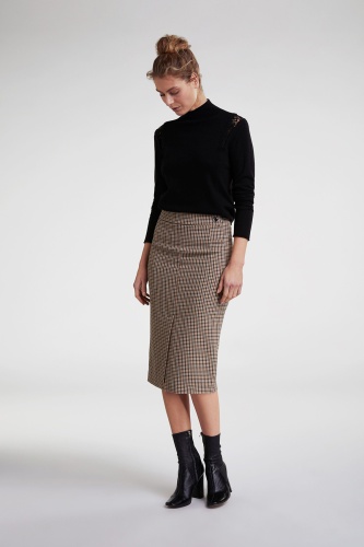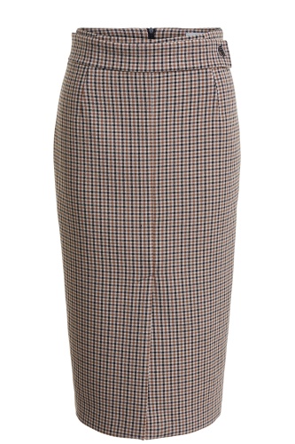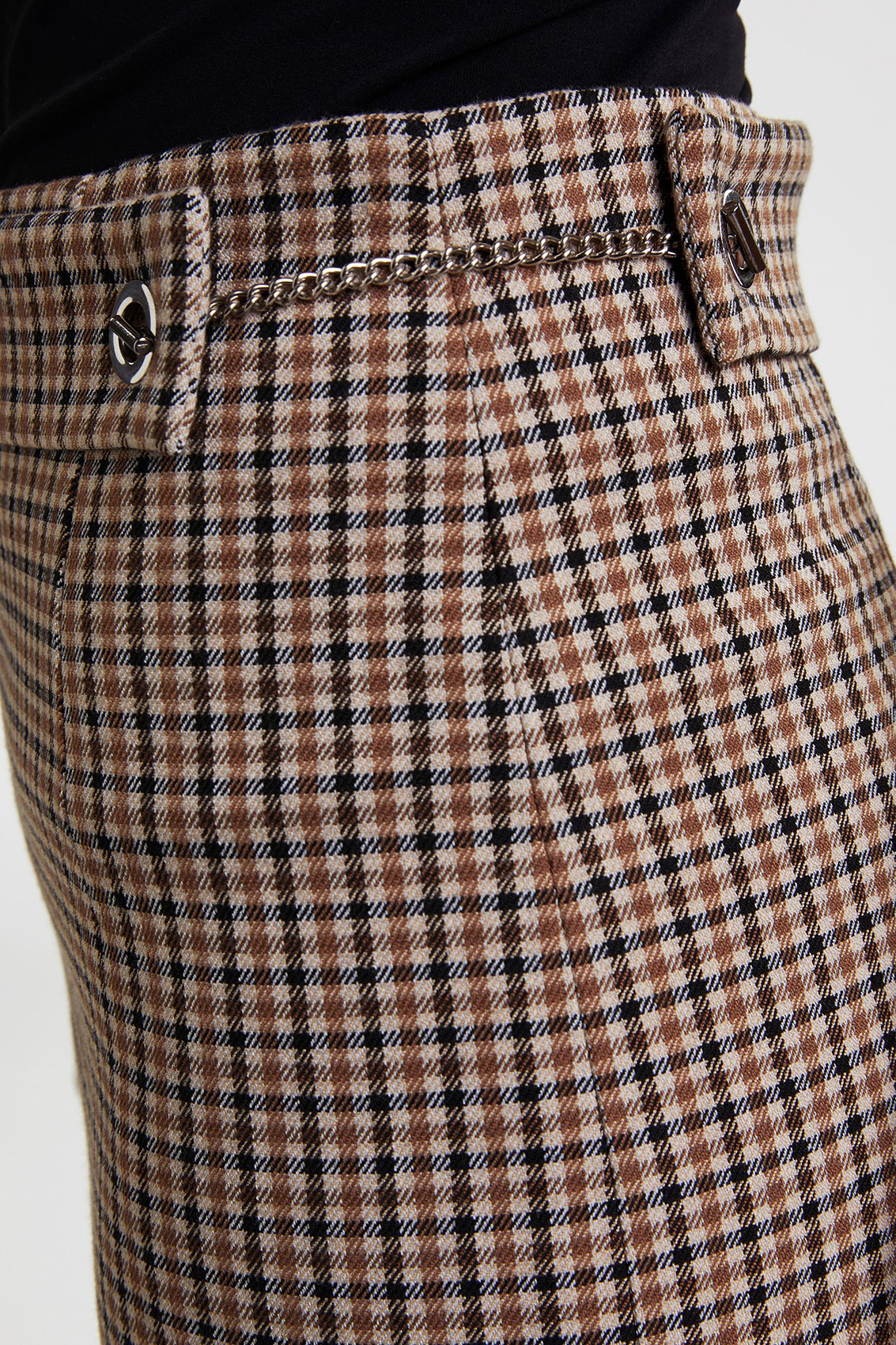 Классическая юбка-карандаш удивляет количеством модных элементов! Средняя посадка, длина чуть ниже колен. Трендовый принт в клетку. Разрез со шлицей спереди. Декоративный пояс на цепочке. Эта юбка станет изюминкой множества стильных образов.