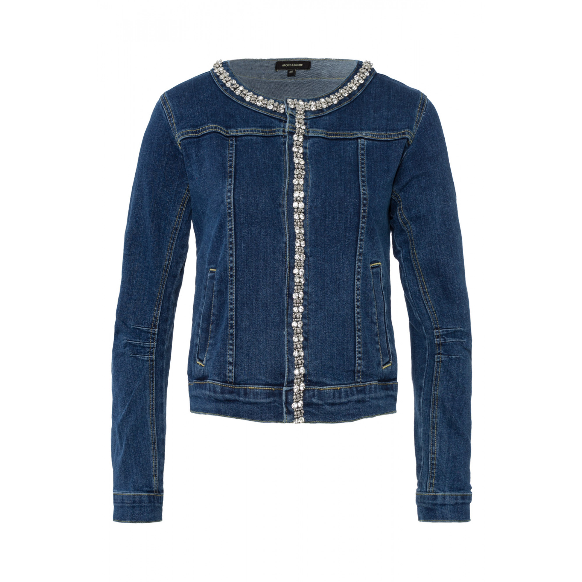 Джинсовая куртка с узкой талией. Универсальная модель сочетается с любимым образом: от классического до повседневого. Украшена декоративными стразами вдоль планки и выреза, а так же двумя наклонными карманами. Застегивается на потайные кнопки. Длина в размере 44 = 50см