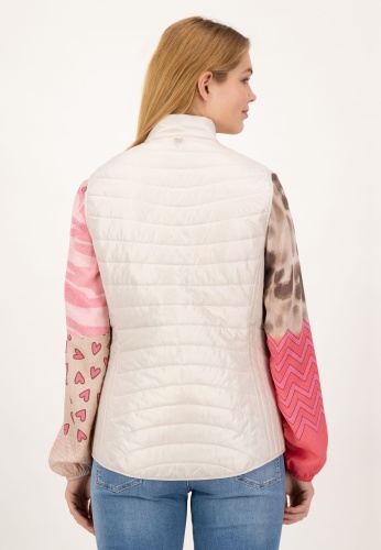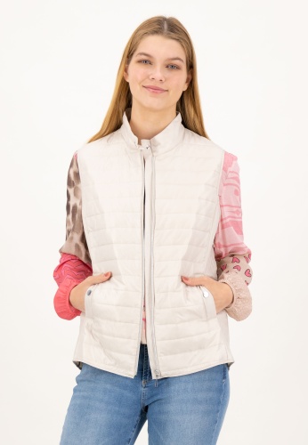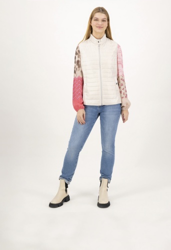 На сайте указаны российские размеры. Женственный спортивный стеганый жилет из легкого высококачественного материала. Жилет впечатляет своим лаконичным видом благодаря горизонтальной стежке, которая сочетается с продольной стежкой по бокам. Эта комбинация также делает их фигуру льстивой. Его можно комбинировать по-разному, и благодаря насыщенному розовому цвету он придает каждому образу что-то свое. Женственный спортивный образ подчеркивают два боковых кармана, которые можно застегнуть на кнопку. Еще одним привлекательным элементом жилета является тонкое блестящее сердце под воротником-стойкой на спине. Модель ростом 177 см Измерения для 44 размера: Окружность груди: 103 см Талия: 96 см Бедра: 115см Длина по спинке: 68 см