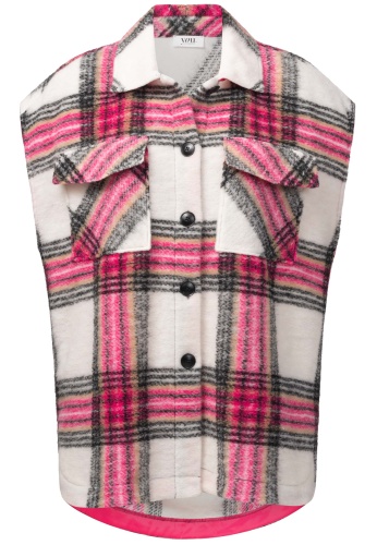 На сайте указаны российские размеры. Шерстяной жилет с ярким рисунком в клетку и стильными деталями. Этот уютный жилет не только согревает, но и привлекает внимание. Стильный узор в клетку в сочетании с прямым кроем и свободным кроем создают современный образ. Большие нагрудные карманы, планка на пуговицах и отложной воротник подчеркивают повседневный характер жилета. Изделие буквально завершает закругленный низ. Модель ростом 177 см Измерения для 44 размера: Окружность груди: 125 см Талия: 125 см Бедра: 125 см Длина по спинке: 75 см
