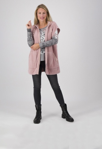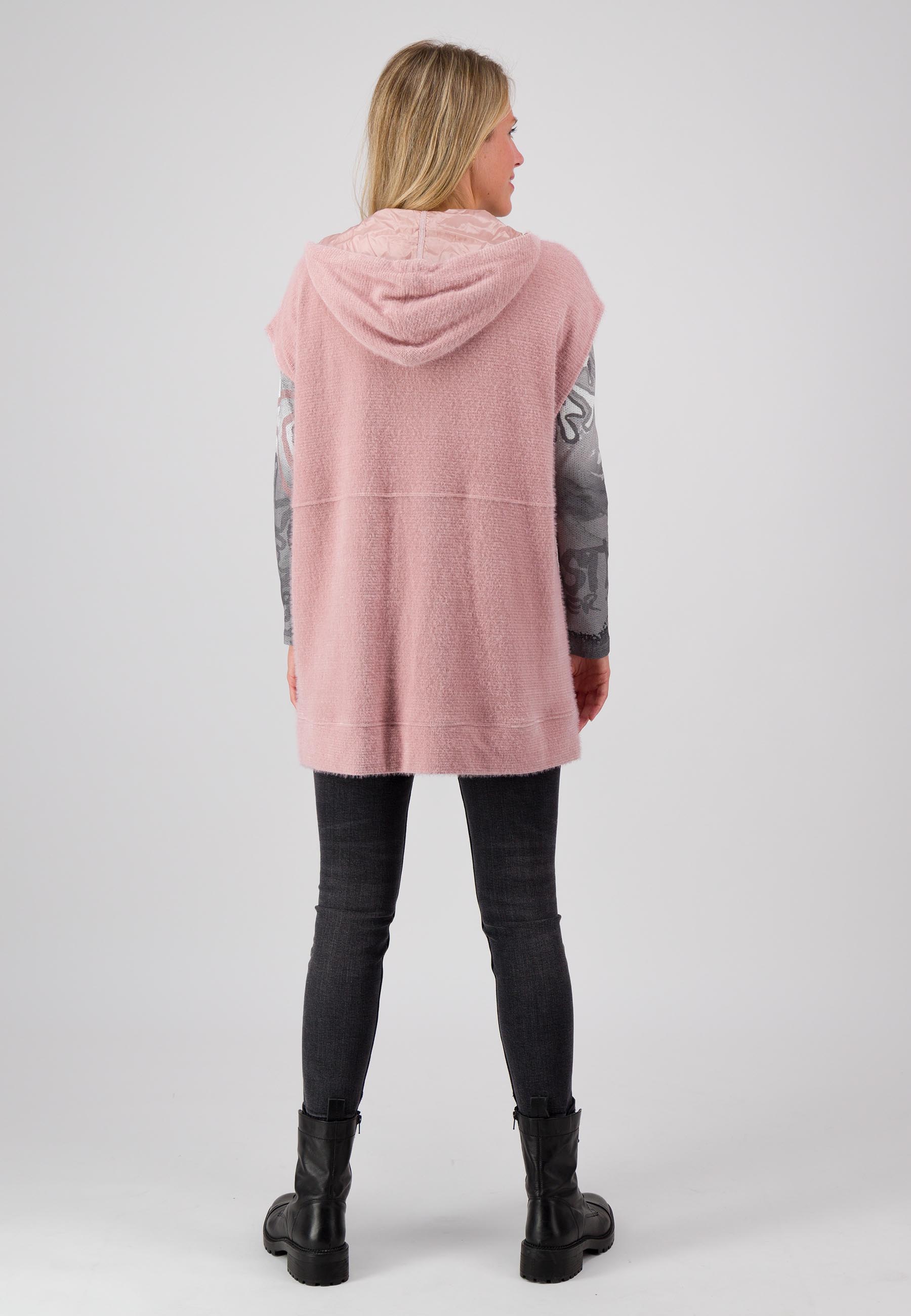 На сайте указаны российские размеры. Длинный жилет из удивительно мягкого материала впечатляет своей длинной посадкой и широкими плечами, которые можно легко сочетать с шикарной блузкой или классической рубашкой с длинными рукавами. Красиво мерцающий контрастный материал используется не только на внутренней подкладке повседневного капюшона, но и на лямках капюшона, боковых карманах и высококачественной молнии. Модель ростом 177 см Измерения для 44 размера: