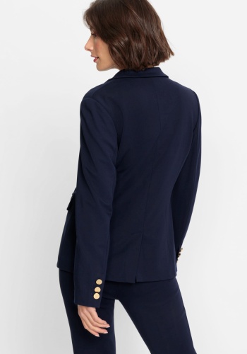 Пиджак с достаточной степенью эластичности, обеспечивающей комфорт на протяжении всего дня! Однобортный жакет с воротником-стойкой, двумя передними карманами, индивидуальными швами для придания формы и красивыми пуговицами матового золотого цвета.