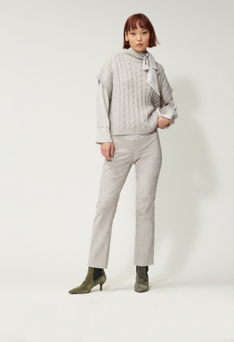 Легкий пуловер косой вязкой из высококачественной итальянской смесовой шерсти с эффектом меланжа. Объемный пуловер-кейп с ребристым воротником-водолазкой.