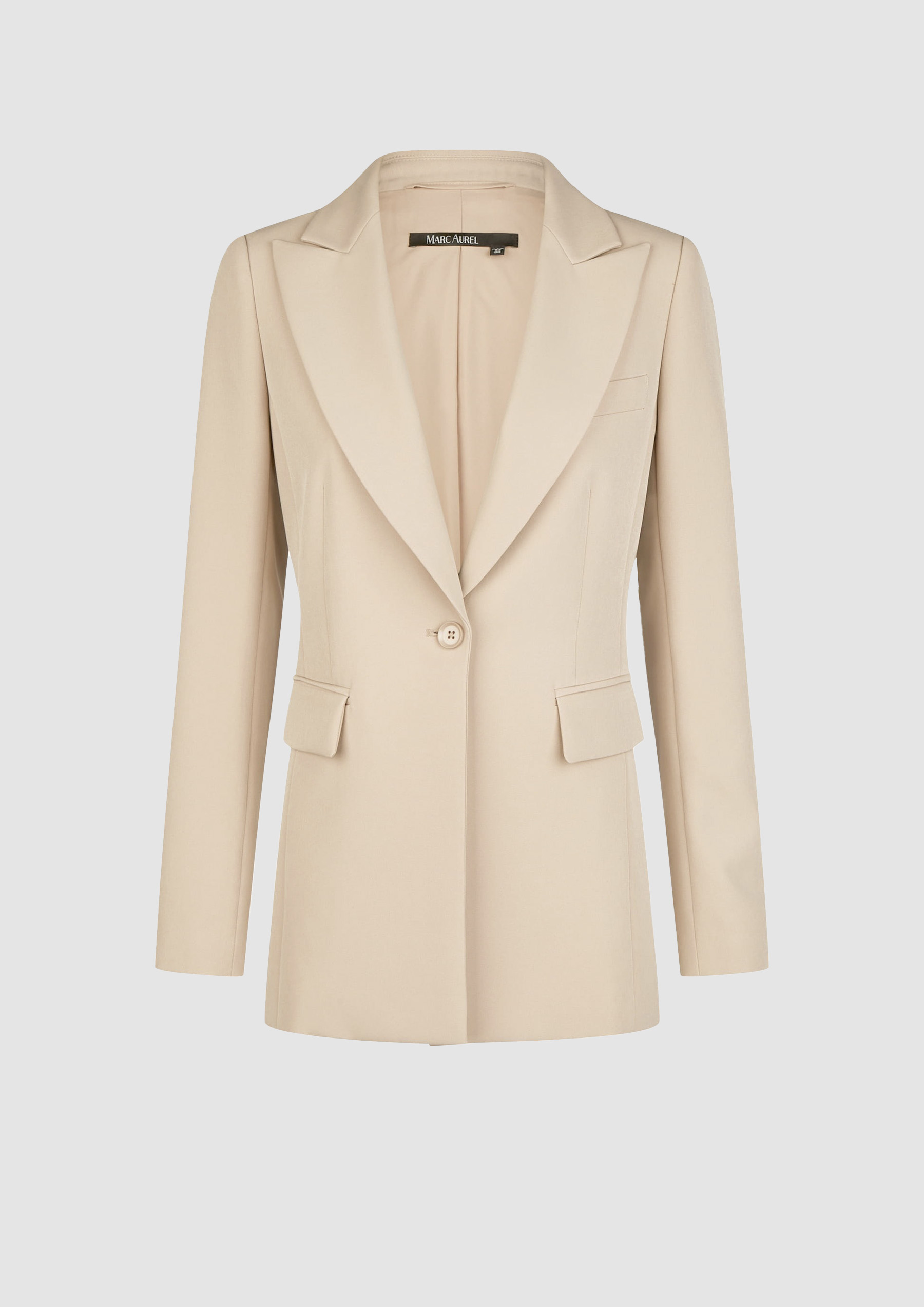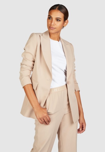 Этот узкий пиджак на одной пуговице изготовлен из мягкой и легкой в уходе ткани. Выполненная из чемоданной продукции с эмблемой, она впечатляет своей классической структурой с нагрудным карманом и карманами с окантовкой. Особенно красивой деталью является модный остроконечный лацкан.