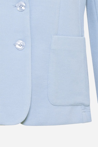 Смесь хлопка и достаточное количество эластичных материалов для комфорта делают этот пиджак привлекательным на каждый день. Модель с вырезом на талии, двумя передними карманами и застежкой на две пуговицы.