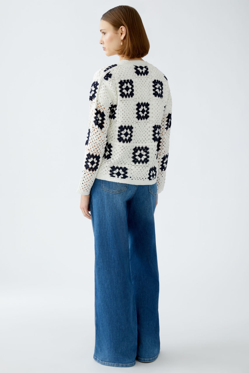 Кардиган отлично подойдет для создания уютных повседневных образов. Благодаря свободному крою и длинным рукавам с манжетами он обеспечивает комфорт в течение всего дня. Геометрический узор добавляет изделию стильный акцент и делает его универсальным элементом гардероба.