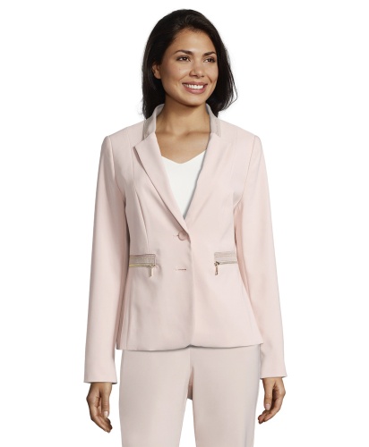 Классический жакет - абсолютно необходимый элемент женского гардероба! Слегка приталенный крой подчеркивает достоинства фигуры. Лацканы, застежка на пуговицах, длинные рукава. Отделка блестящей тесьмой придает образу нотку гламура. Этот жакет будет изюминкой как делового, так и кэжуал образа.
